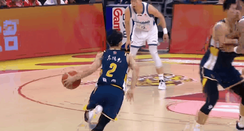 宏远真是没后卫啊,就靠徐杰了。刚才这个半转换,给别人看到3个人退防肯定打阵地了。他可以打一个超高位挡拆进去找机会~~广东男篮VS青岛男篮