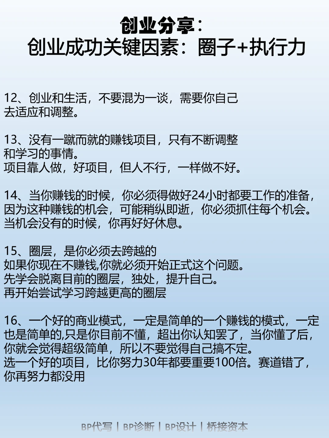 圈子和执行力是创业成功的绝配! U1S1,圈子就是你的人脉资源,能给你开拓市场、找到投资、搞定合作伙伴; 而执行力则是你的行动力,决定着项目能否按计划顺利进行。没有一个强大的圈子,你就像孤家寡人,难以找到支持和资源; 没有坚实的执行力,你的计划可能只是一纸空谈。 所以,要想在激烈竞争的创业世界中胜出,圈子和执行力绝对是你的金牌组合