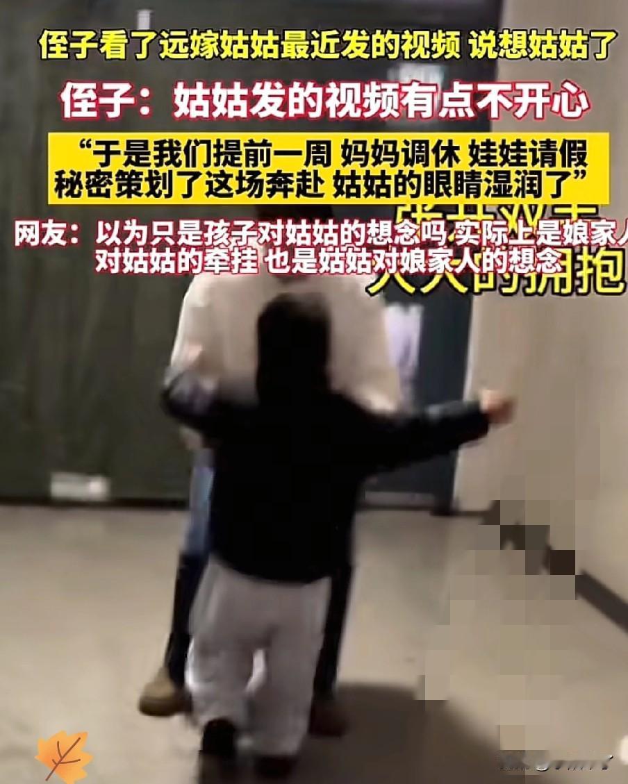 泪目了!山西,姑姑远嫁,3岁的侄子看到姑姑发的视频,觉得姑姑有些不开心,就和妈妈说自己想姑姑了,竟让妈妈直接跨省去河南给姑姑送惊喜,这波操作也太戳心了! 孩子从视频里敏锐察觉到姑姑的不开心,吵着闹着要见姑姑,妈妈二话不说调休请假,带着他奔赴千里之外! 村口相遇的瞬间,孩子撒开妈妈的手边跑边喊“姑姑”,那软糯的声音直接戳中泪点! 姑姑又惊又喜,瞬间红了眼眶,蹲下身紧紧抱住侄子,反复念叨“你咋来了,咋不提前说一声”。这份双向奔赴的亲情,比任何贵重礼物都动人! 都说远嫁的姑娘最怕孤单,可娘家人的惦念,尤其是孩子这份纯粹无杂质的想念,就是她们最硬的底气! 亲情从不怕距离,只藏在日常的牵挂与说走就走的奔赴里!
