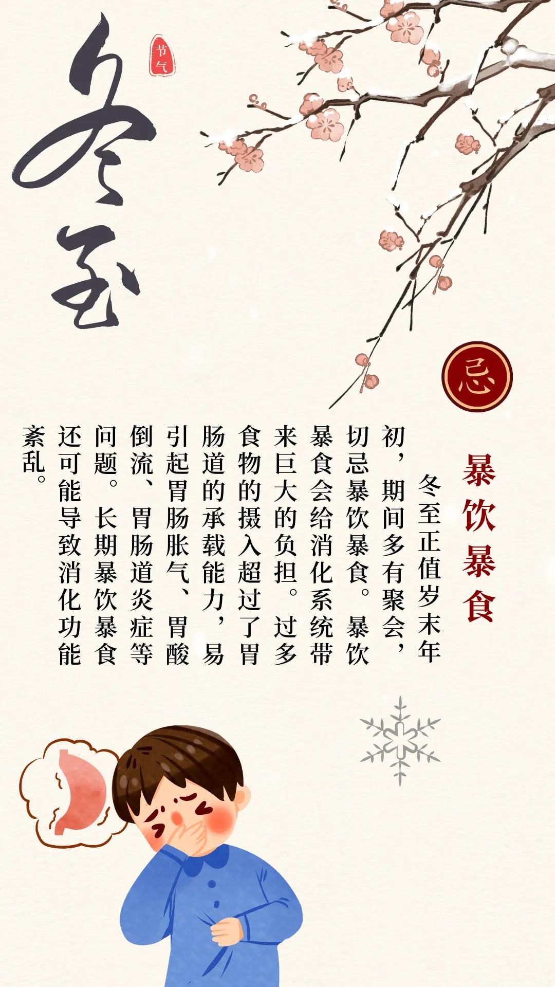 冬至养生不用愁,护住这四个地方就够了 冬至养生的核心就是护好刚冒头的那点微弱阳气,护住它可比瞎补管用多了。 头是阳气最集中的地方,也最容易漏阳气,出门风大一定要戴帽子,洗完头必须吹干,别湿着头发出门或睡觉,不然容易头痛感冒。 后颈有好几个怕风的穴位,穿高领衣服或围围巾准没错,睡前用热毛巾敷一敷,还能缓解脖子僵硬。 老话讲“寒从脚下起”,脚离心脏远、脂肪薄,每天用40℃左右的热水泡15-20分钟,加点艾叶生姜更好,再穿上厚袜子,平时揉揉脚底的涌泉穴,暖身又助眠。 腹部藏着脾胃这些重要器官,穿衣别露肚子,晚上睡觉也要盖好,平时搓热手顺时针揉一揉,生冷的东西千万别多吃。 另外,冬至作息要早睡晚起,等太阳出来再起床。饮食可以吃点羊肉、核桃这些温补的,但别太油腻,配点萝卜白菜防上火,吃碗热饺子也很应景。运动就选散步、打太极这种温和的,别出一身大汗。心态也得平和点,别瞎生气。 说到底,冬至养生就是外防风寒、内养精神,把这点阳气护好了,来年身体才能更硬朗。 驱寒暖身小方法 冬后养生 冬至养生食物