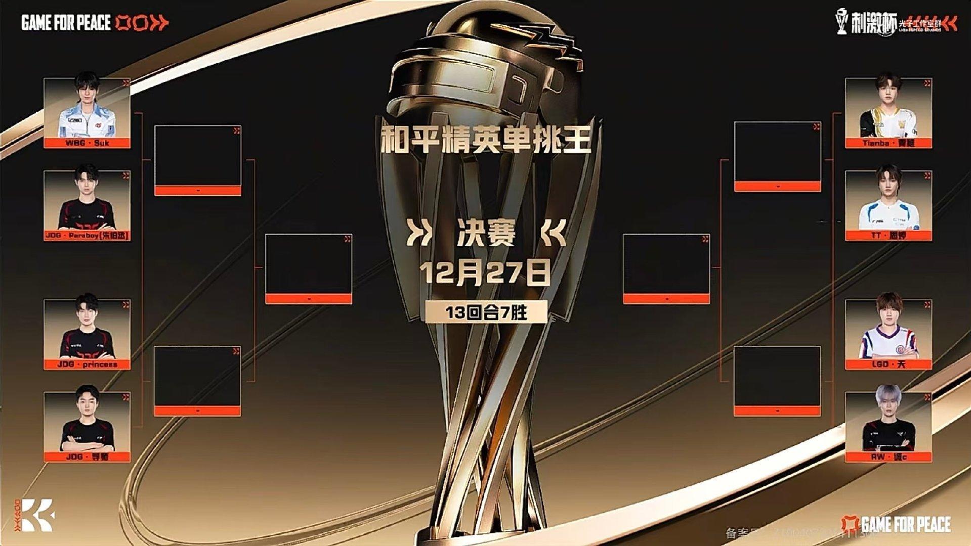 2025和平精英全明星电竞周从一打到七把把都刺激 【2025和平精英单挑王】12月21日-22日,2025和平精英单挑王8强赛火热开战,展现个人实力,谁才是PEL最强单挑王?锁定PEL官方直播间,让我们共同见证精彩对决!12月21日对阵名单如下:17:30-17:45 对战 (朱伯丞)17:45-18:00 对战 12月22日对阵名单如下:17:30-17:45 对战 17:45-18:00 对战 12月27日,2025和平精英单挑王总决赛正式开启,让我们共同期待晋级选手名单吧!