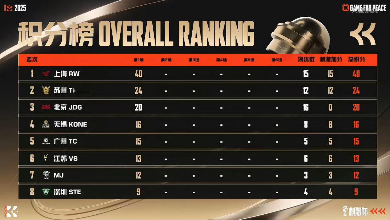 2025和平精英全明星电竞周和平精英刺激杯 【2025和平精英刺激杯】突围赛(线上赛)Day2 第一场获胜队伍:MVP:截至本场总积分榜第一名:第二名:第三名:第四名:第五名:截至本场淘汰榜第一名:第二名:第三名:第四名:(朱伯丞)第五名: