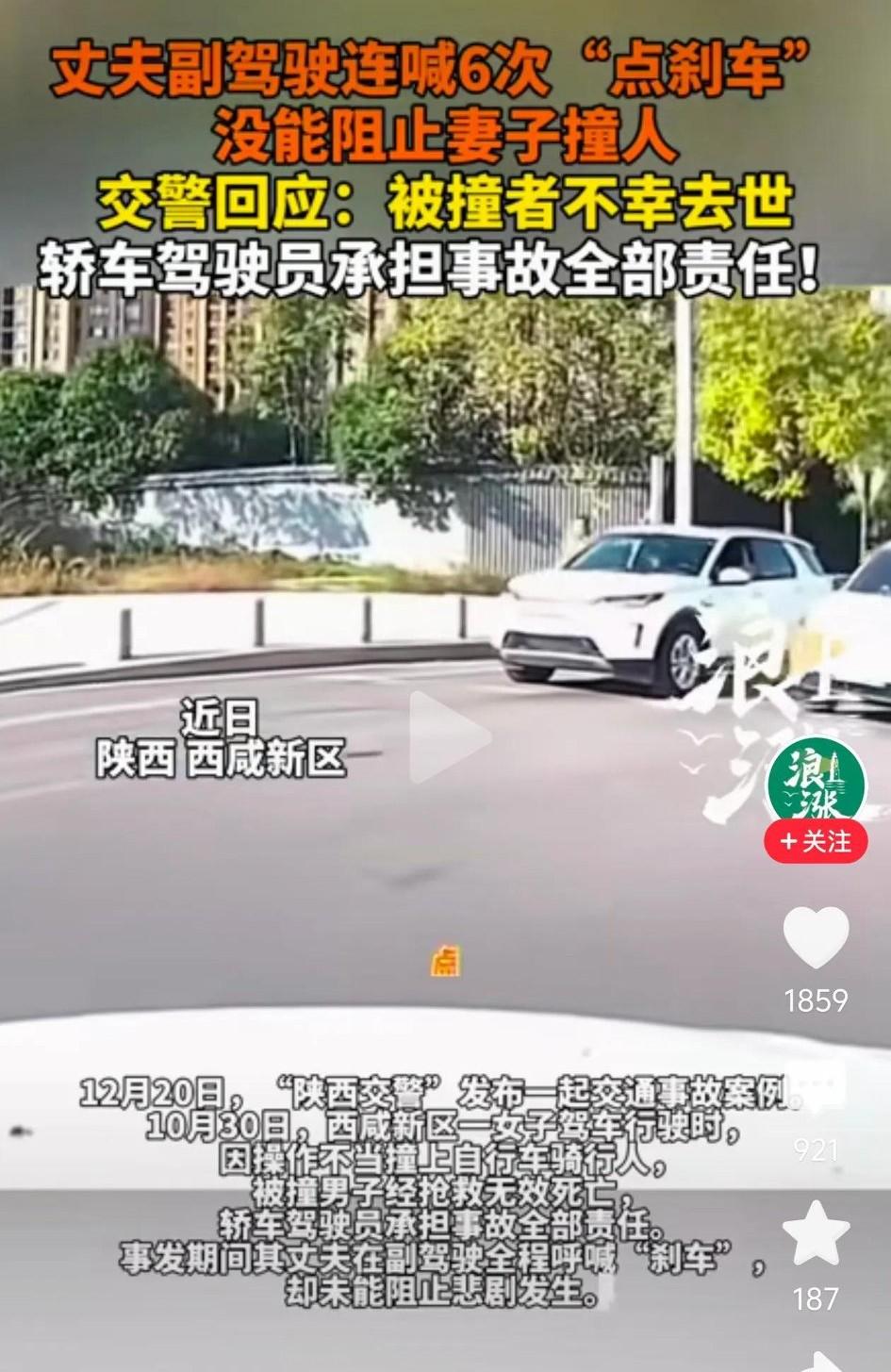 丈夫连喊六次“点刹车”,依然没能阻止妻子把人撞死! 万般无奈之下,坐在副驾驶的丈夫应该直接拉手刹,或许都能避免车祸的发生,通常人在紧张情况下,越喊她越慌,越慌她越踩油门! 骑车的小伙子太惨了!飞来横祸! 抛开撞自行车不谈,这个女的到底想往哪里开?!这样的司机就不要上路了!对自己对他人都不负责任! 这不是女司机,这是女杀手啊!现在后悔也晚了! 刹车 车刹车事故 车辆自动刹车