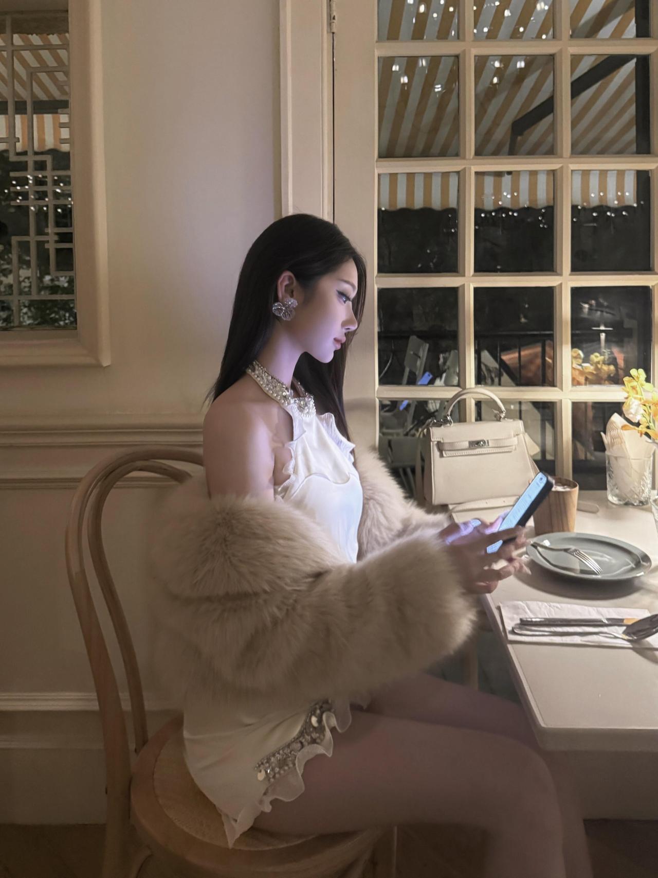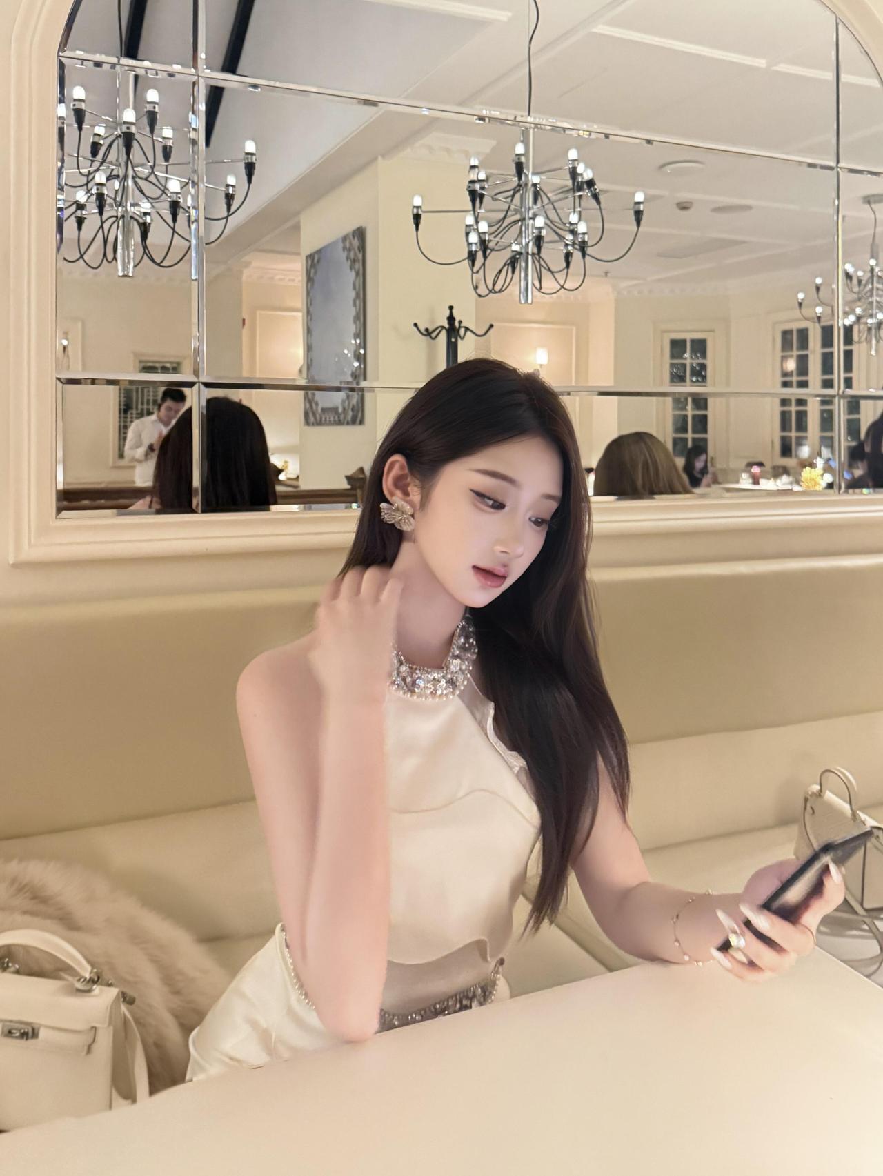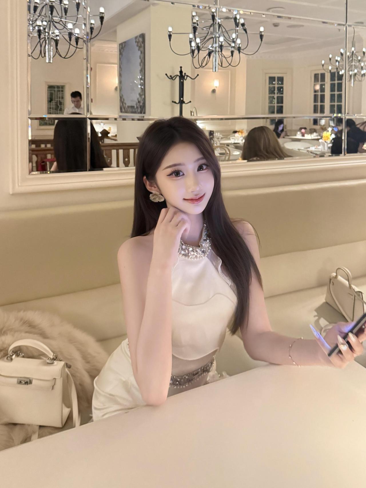 温柔粉裙少女,优雅坐椅间,微笑如春风孙允珠孙允珠极品美图模特模特的神仙身材