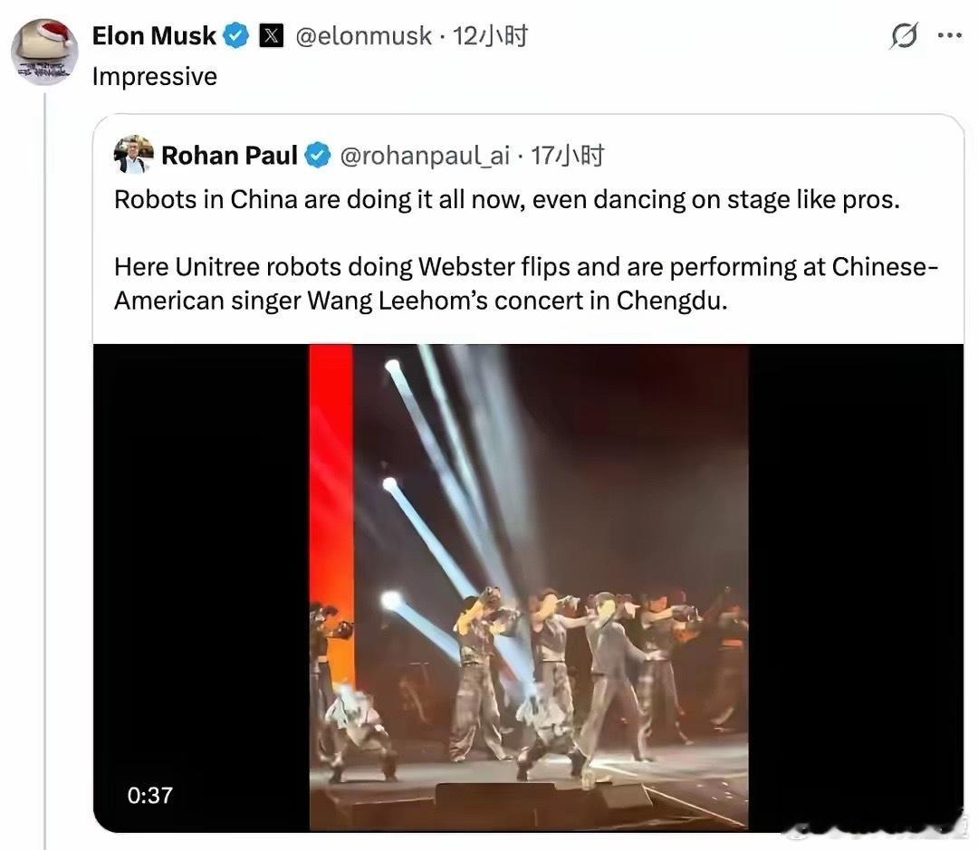 人形机器人迎多重利好,明天能否起飞?利好1、王力宏演唱会上出现了6台宇树人形机器人伴舞并完成了高难度的后空翻动作,这一消息在网上引起广泛讨论。不仅如此,马斯克居然也关注到了该视频,他在转发该视频的时候并评论称:“Impressive(令人印象深刻)!过年的时候宇树机器人尚需要搀扶,年底的时候居然已经能跳舞并完成高难度动作,国内人形机器人的发展不可谓不快!利好2、中国俱乐部自主设计制造的机器人参加了阿联酋阿布扎比举办的格斗机器人大赛并获得了冠军!格斗机器人大赛夺冠无疑证明了国内机器人水平已经是国际领先了!另一方面,人形机器人板块已经调整较长时间,多数个股已较前期高点下跌20%以上,调整幅度还是比较深的,有一定的反弹需求!不过人形机器人明天究竟能否起飞还要看市场能否买账,各位股民还是谨慎参与!