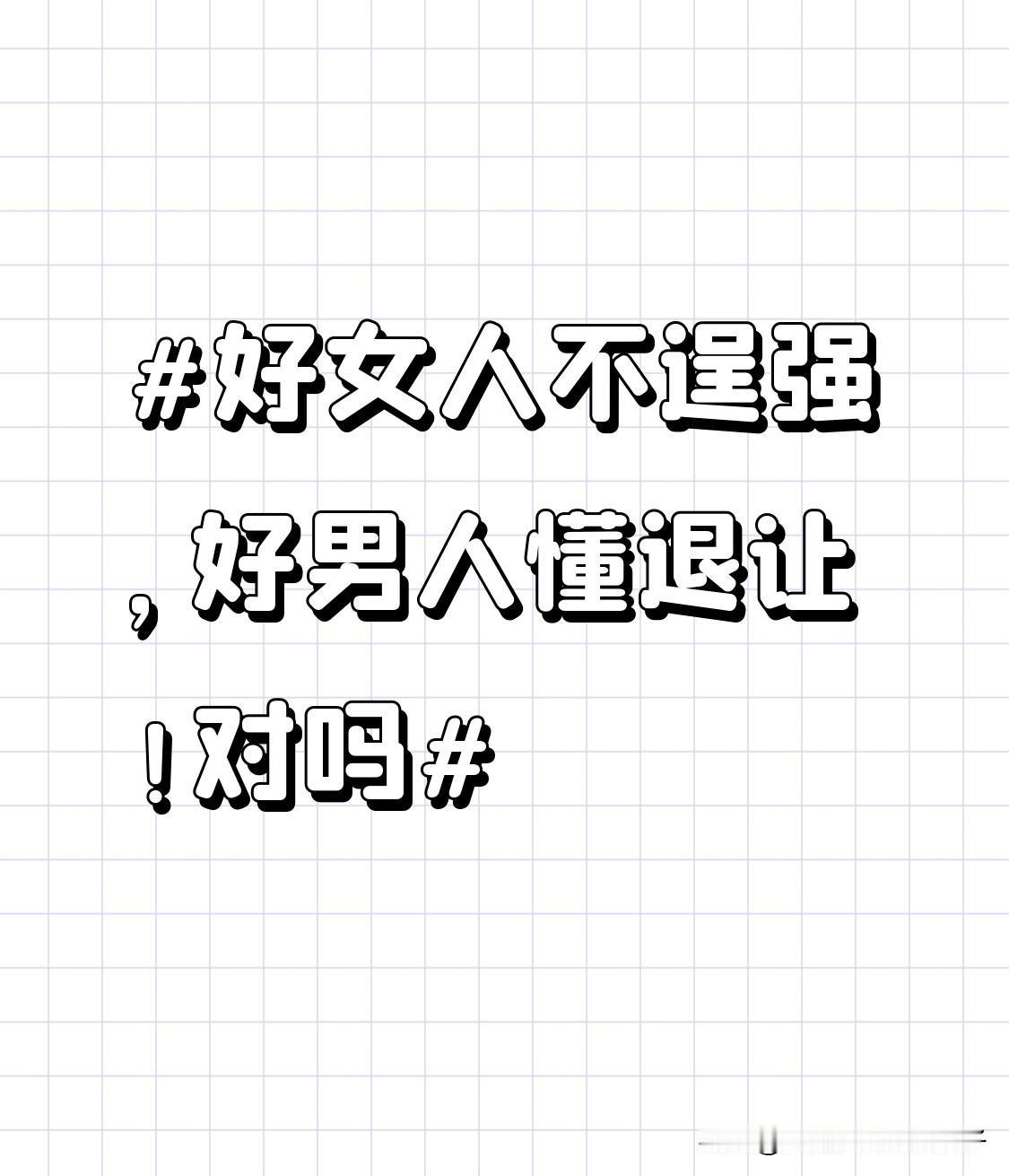 “好女人不逞强,好男人懂退让”这话挺有道理的。一个不逞强的女人,不会揪着男人的错不放,而是给足男人尊重和自信。就像在生活里,女人不事事争强好胜,家庭氛围会和谐很多。 而好男人懂得退让,能避免和女人的争吵,不让女人受伤害。男女都有犯错的时候,都退一步,爱情才能更长远。就怕两人都逞能较劲,最后伤了最亲的人。不过,这也得看对方值不值得,如果遇到“烂泥扶不上墙”的,也不能一味退让,该清醒就得清醒。