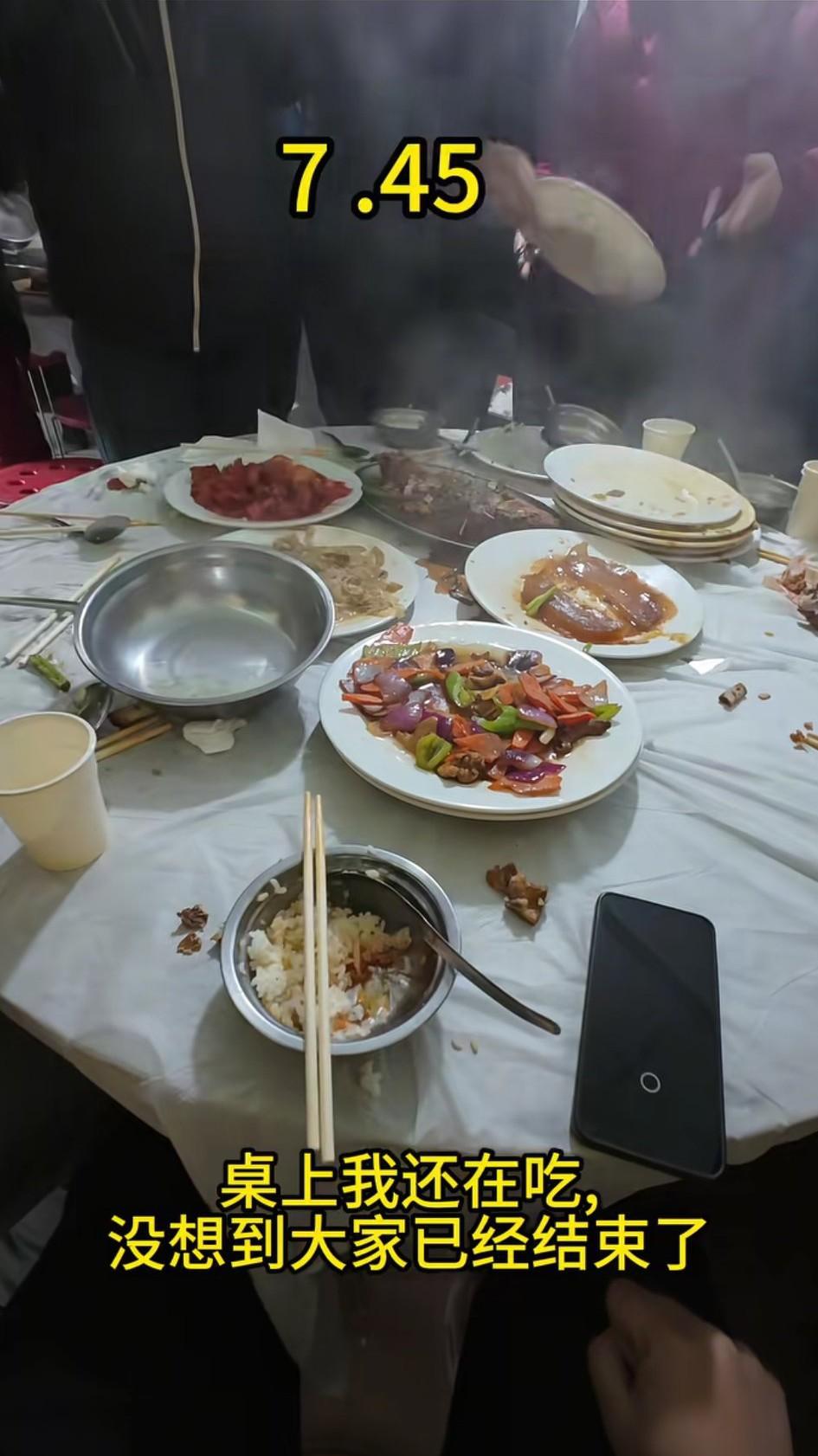 这样的“东北大席”,真的是第一次看到! 某音上看到的一个南方网友发的视频,说他第一次参加东北大席,等我看完整个视频,真的让我惊掉下巴! 其中有以下几个点让我印象深刻: 1、早上7点半开始吃大席。 2、菜一个没上,先给你上一大盘子饭。 3、吃到最后,基本都是站着吃席的。 4、桌子上还有人在吃,大妈们已经在打包了。 5、7:30开席,7:45结束了。 …… 东北的朋友们,你们那里吃大席都是这个样式的吗?
