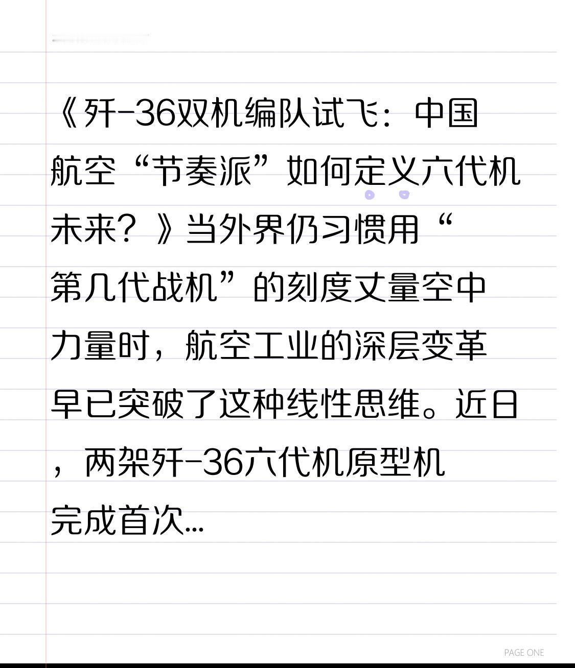 《歼-36双机编队试飞:中国航空“节奏派”如何定义六代机未来?》 当外界仍习惯用