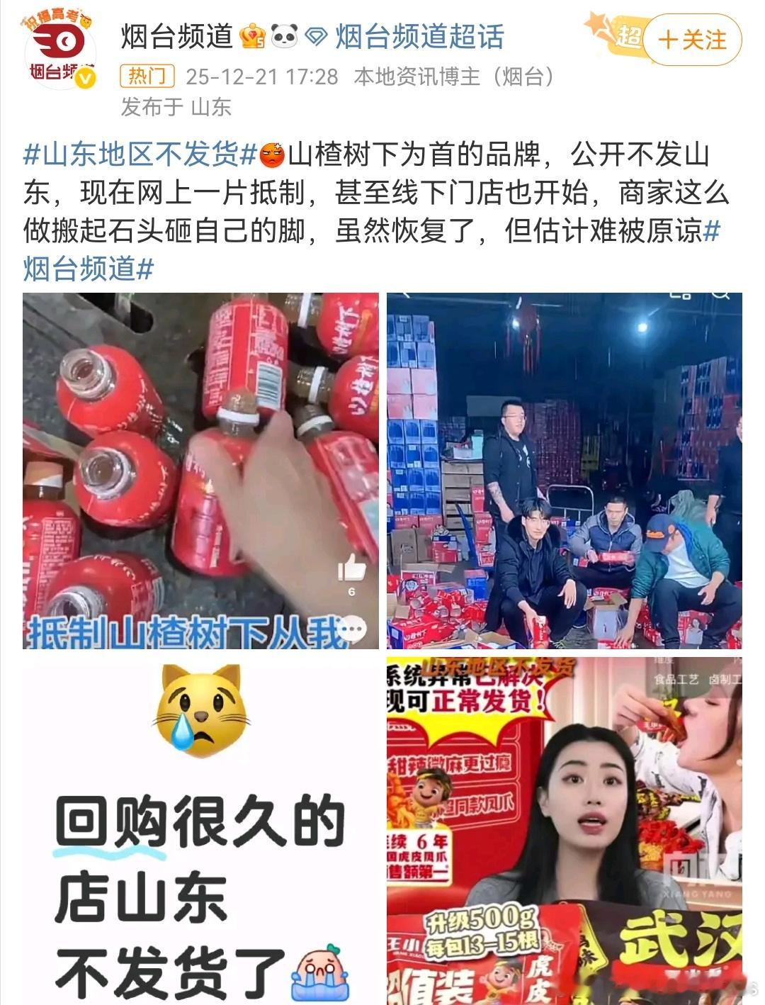商家给山东发ab货山楂树下只是个标签,这一波就有点好笑,消费品牌非得跟着一帮试图操纵舆论打标签的混,现在踢到铁板了吧?别的不说,你觉得啥东西是山东产不了的…何况像山楂树下的原材料甚至还是青州来的,怎么敢搞这种操作?还有一大堆AB货的玩法,真是大开眼界。山东这一亿人口市场,全买本地货的话,吃亏的可是某系小商品和消费品哦。还有空气,头些年重工化工都在北方、空气稀烂的时候,不见南边雾霾,也不见说北风刮过来污染。现在化工都给弄到手了,空气差了就成了北方刮来的了你不能赚钱的同时,一点责任也不想背吧?记住“物极必反”,差不多得了,欧美那套舆论战法有本事多对外用,自己搞拉踩,最后一定是对立冲突,对谁都不好。 大家一起好好做生意,出去抢外国人市场才是正路。