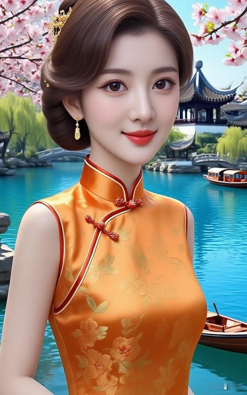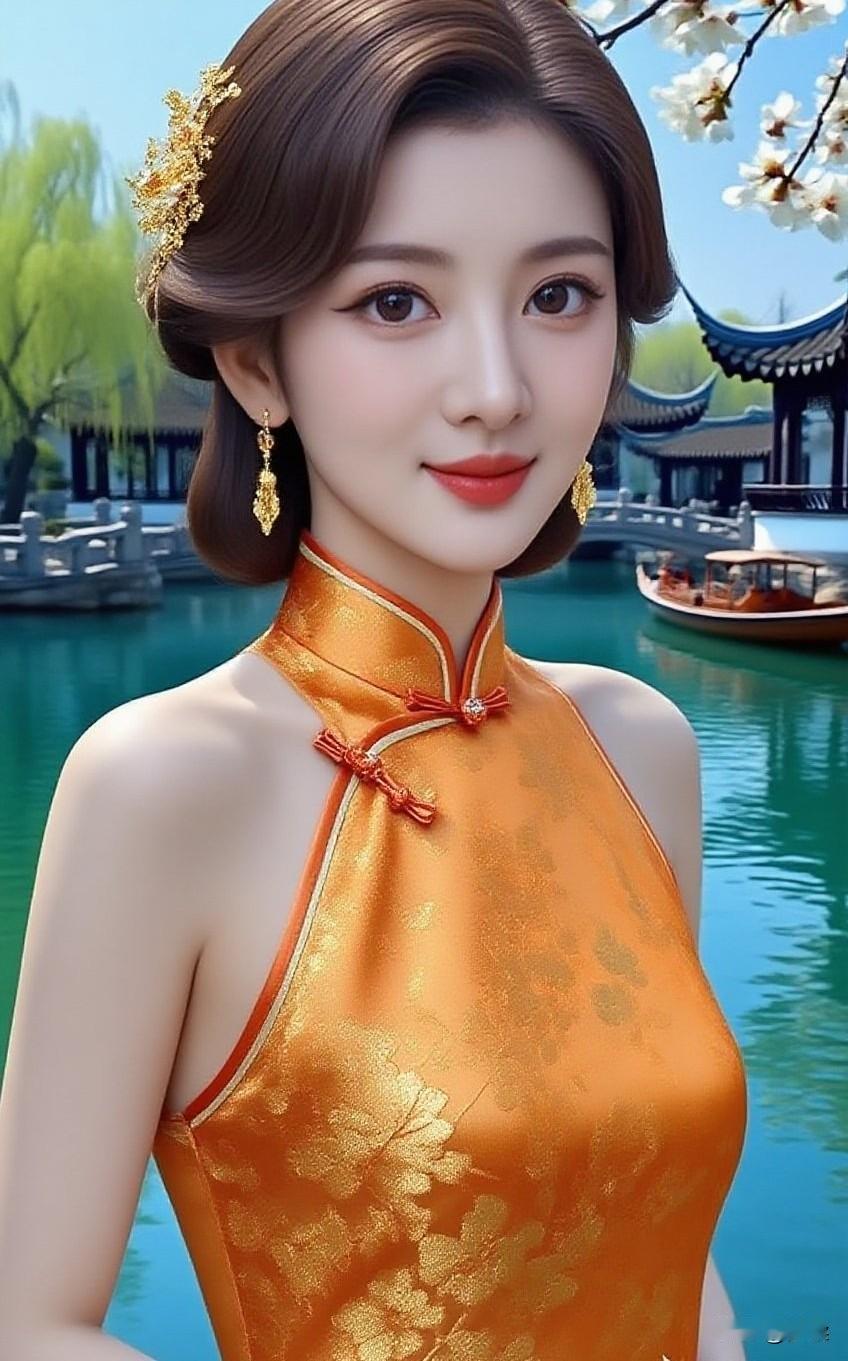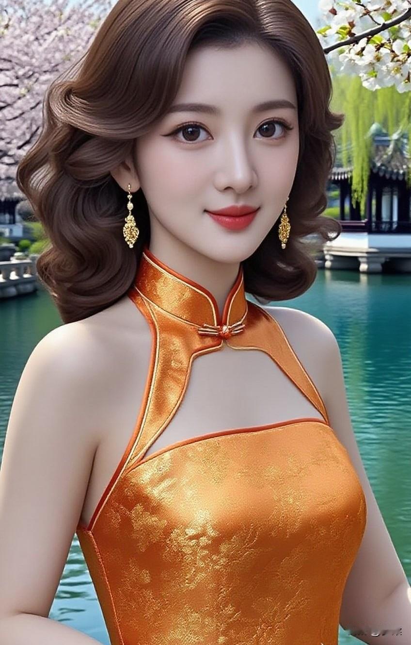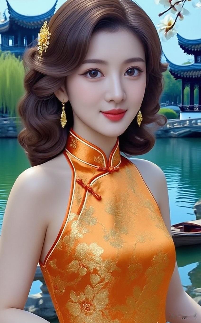 复古旗袍美人,优雅气质,红唇与珍珠耳环相得益彰,散发着东方韵味。
