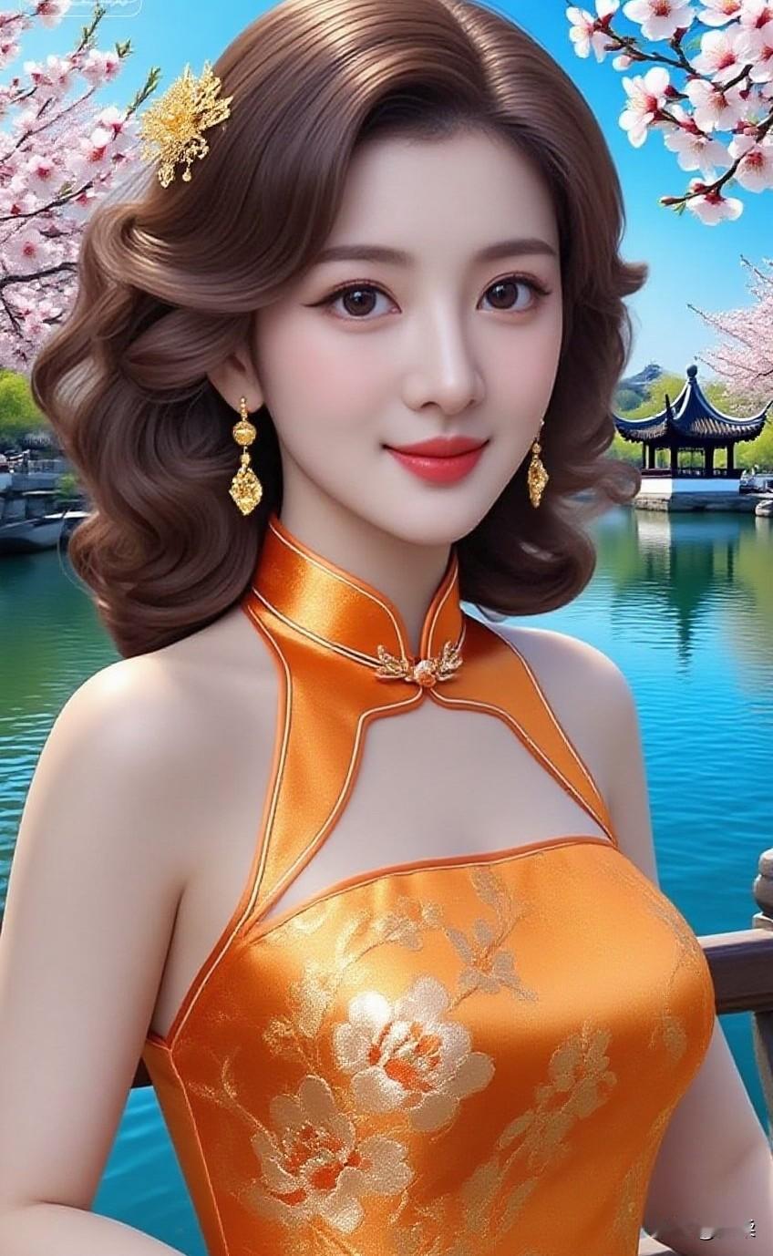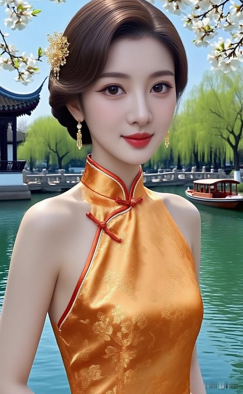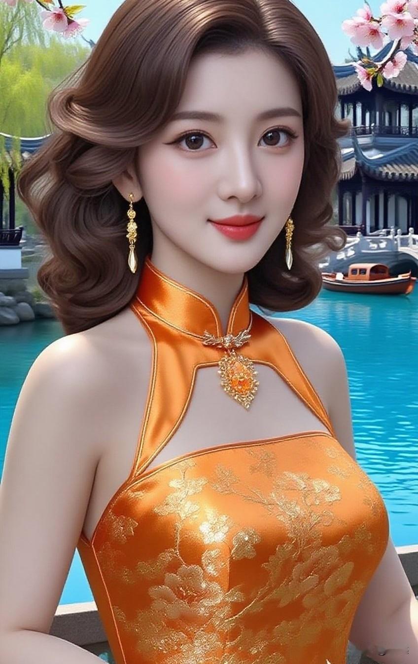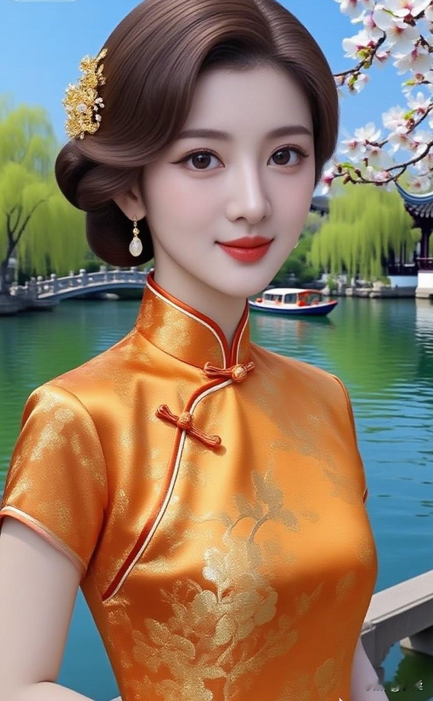 复古旗袍美人,优雅气质,红唇与珍珠耳环相得益彰,散发着东方韵味。