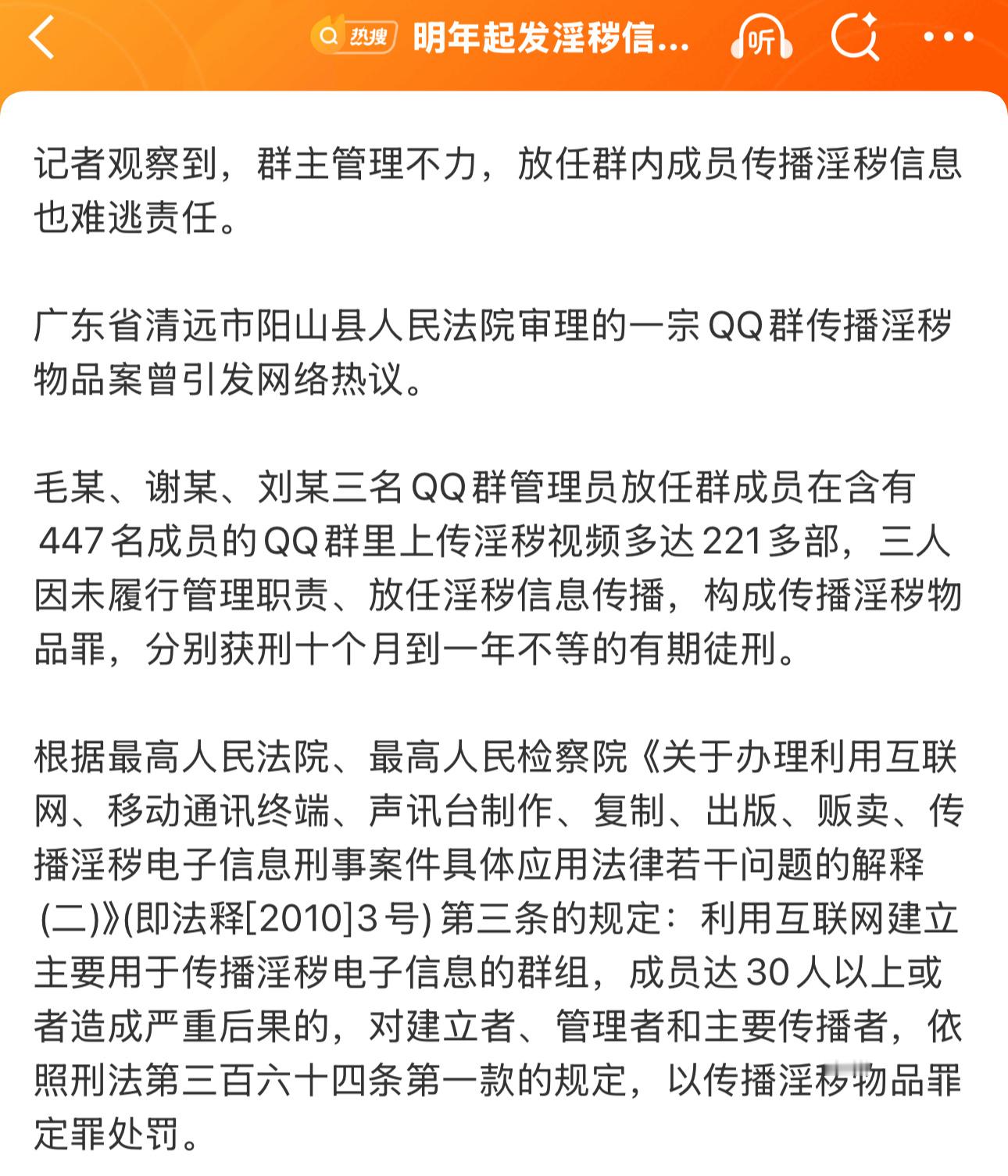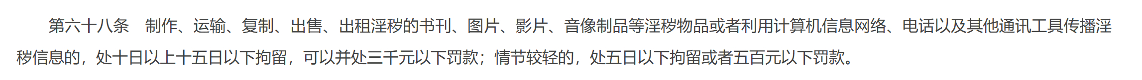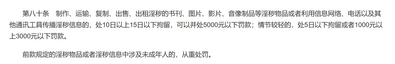 不知道媒体为啥突然带这个节奏→_→明年起发淫秽信息违法明年起向好友发淫秽信息违法治安管理处罚法,一直是禁止发送淫秽信息的,哪怕点对点也不行,但一般不是你给一个人发就处罚,一般是对多人发或者有从中牟利,这点从媒体自己列举的案例就能看出来(案例也是遵循的老的法条)。老版本的治安管理处罚法是第六十八条,新版本的治安管理处罚法是第八十条,两者在认定上几乎一样,只是新版本的处罚更重,而且增加了涉及未成年人从重处罚。用现有案例的判罚来论证新的法条,媒体带节奏的能力不可谓不强。热点观点 明年起向好友发淫秽信息违法