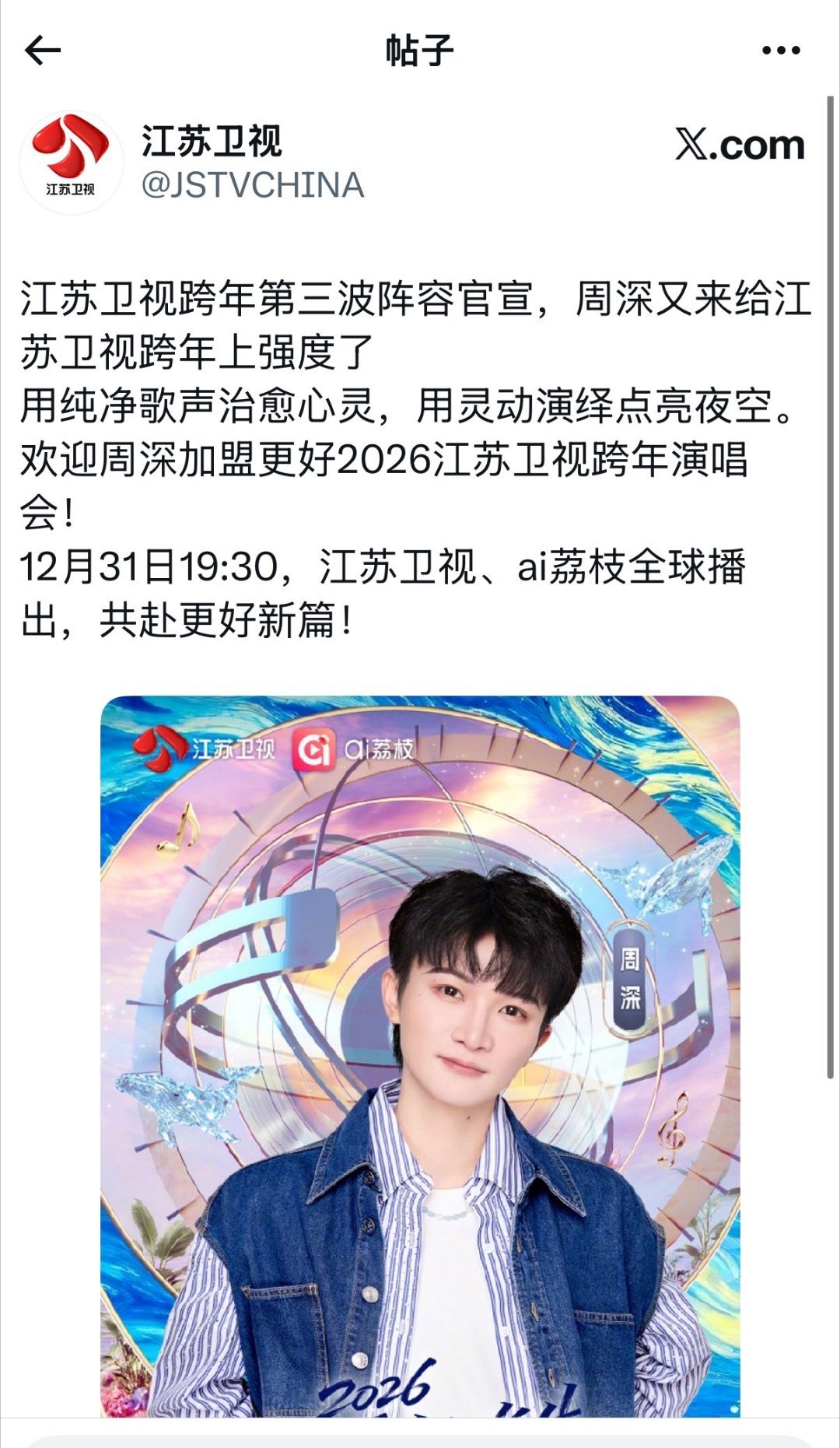 周深📣12.22江苏卫视跨年物料📣【江苏卫视】海外平台更新了江苏