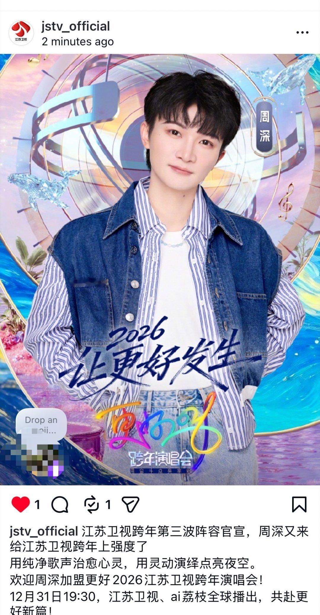 周深 📣 12.22 江苏卫视跨年物料 📣【江苏卫视】海外平台更新了江苏卫视跨年演唱会深深的官宣物料多多四连【⭐🍎🧱】