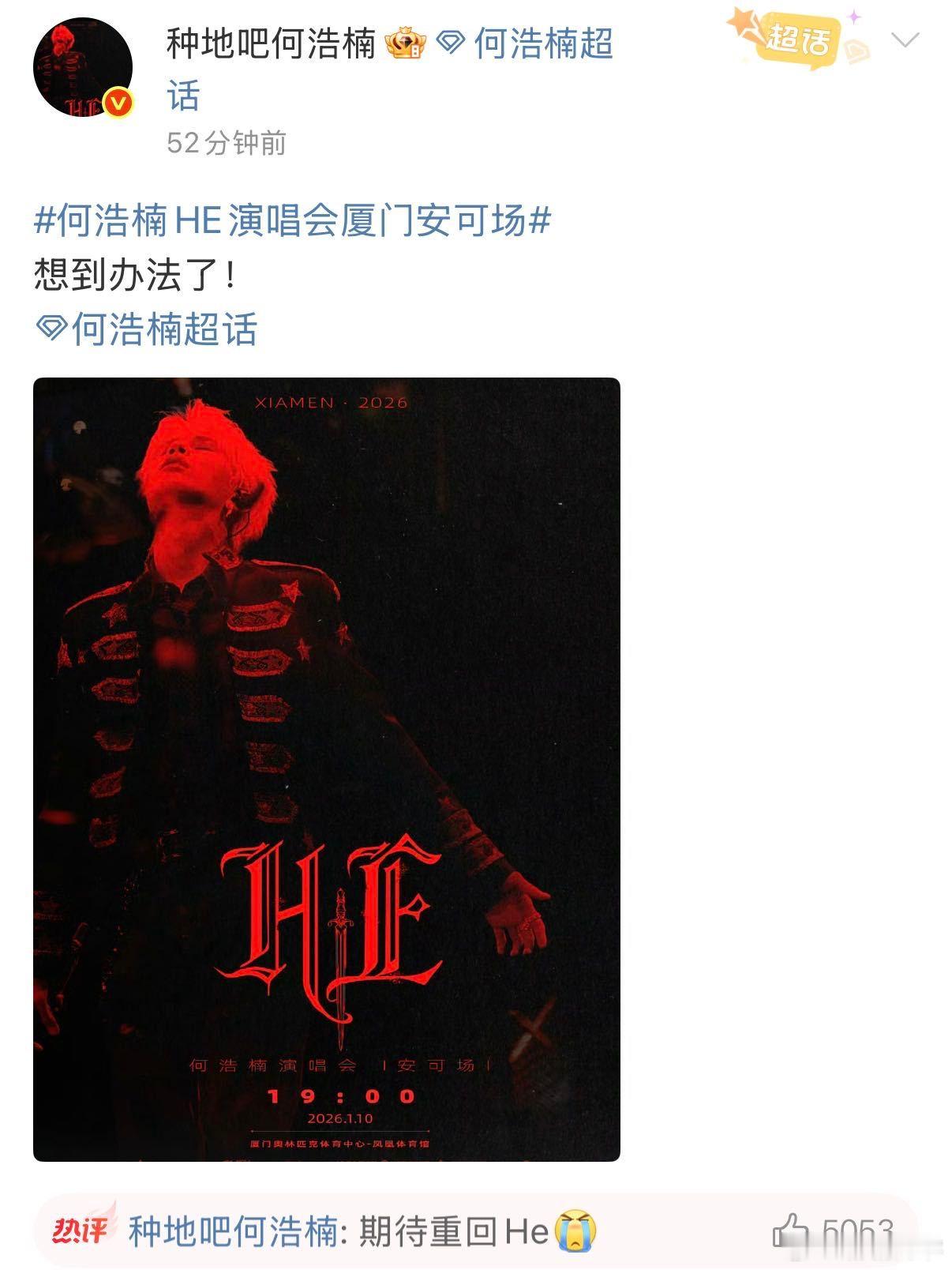 何浩楠厦门安可场官宣 喜讯来袭!何浩楠厦门安可场官宣咯!生日会后大家一直沉浸在小何的魅力中,期待着返场。这次安可场就像一颗糖,甜到了粉丝们的心坎里。我已经迫不及待想看到小何在舞台上的风采,1月10号冲呀!