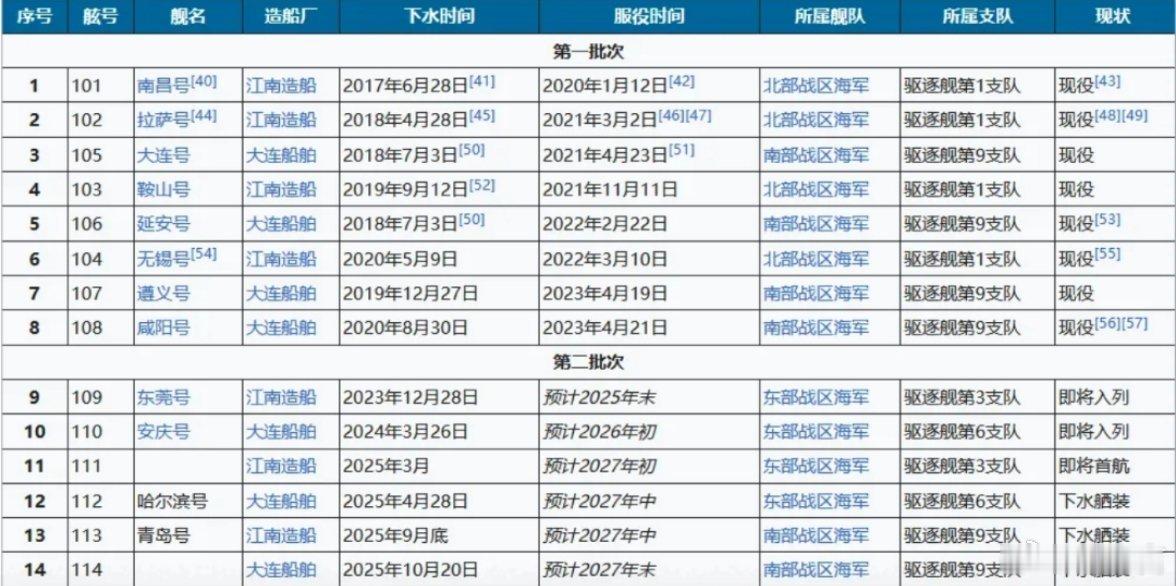 2025年中国海军新增了2艘055型万吨大驱、8艘052D型导弹驱逐舰、2艘054B型导弹护卫舰和1艘054A型导弹护卫舰,总吨位10万吨,新增832单元VLS装置。中国海军在2025年,新增了8艘052D型导弹驱逐舰,总吨位60000吨;同时新增了HT-1型VLS装置512单元。中国海军在2025年,新增了2艘第二批次打造的055型万吨大驱。在舟山某军港码头上,靠泊了两艘已完成海试,尚未刷上舷号的055型万吨大驱。倘若不出意外,这两艘导弹驱逐舰即将刷号,择日将入列,届时将结束东海舰队没有万吨大驱的局面。有网友分析,这两艘新批次055将分别配属给两个驱支,也就是109舰给“海上铁拳”,110舰给“海上雄狮”。第一批次打造的8艘055型驱逐舰,舷号101-104段,装备在北部战区海军某驱逐舰支队;舷号105-108段,全都成为南部战区海军某驱逐舰支队的成员。考虑到第二批次打造其他4-6艘055型万吨大驱、第四批次打造剩下的4-5艘052D型导弹驱逐舰、第六批次其他9艘054A型导弹护卫舰,新开工的8000-9000吨级通用驱逐舰等,中国海军垂直发射装置的规模,将历史性地突破5000单元大关,可谓指日可待!对此,你想说点什么呢?