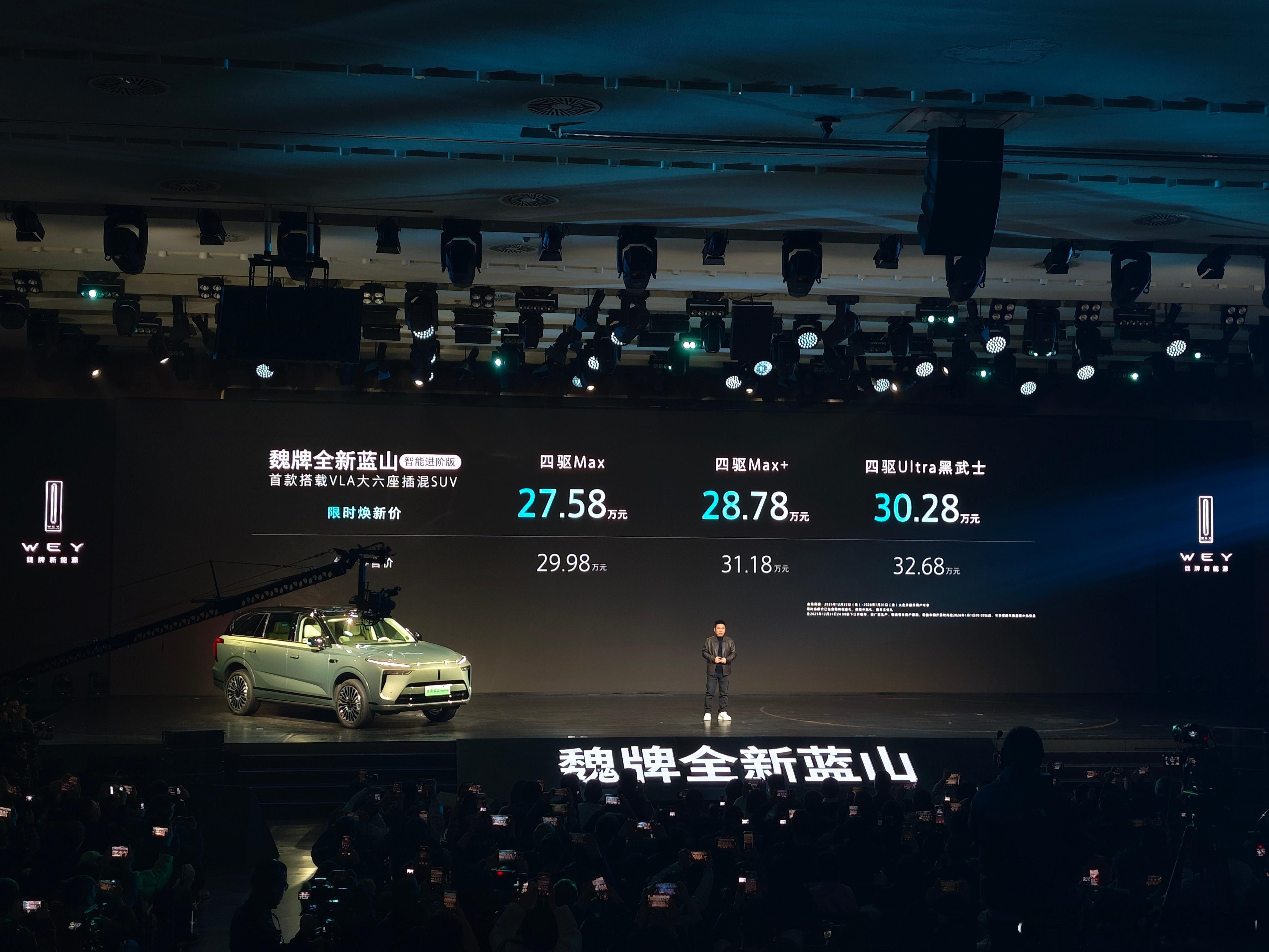 以前都觉得全世界辅助驾驶这一块是三英战吕布。三个中国品牌大战美国特斯拉。现在看,这“三英”可能要变成至少许褚、赵云这个级别的了。继理想和小鹏之后,魏牌也把“VLA辅助驾驶大模型”搬到量产车上了。换言之,这是全世界第一个传用上VLA大模型的统车企。这玩意的好处是什么?前两天我们已经试过了:归纳下来有几点,最有意思的就是你能用语音来进行控制,比如让它开快点、开慢点,或者靠边停车这些,都可以实现了。我建议啊,不管买不买,有时候路过魏牌店的时候可以免费去试试。接触点新鲜事物总归没坏处。那用这套系统的魏牌蓝山除了VLA,官方说还有一个“1+1>2”的杀手锏,也就是Hi4:四挡直驱馈电油耗6.5L/100km;CLTC综合续航1343km,纯电263km;零百加速4.9秒,80-120km/h加速是3.3秒;再有就是50:50的轴荷比。这些都是官方的,到底是反向虚表还是正向虚标,这个还要亲自去试。但是要我说长城是真的不会或者不在意“营销”,升级了电控减震器,蓝山也可以预瞄,然后调整阻尼,提升座舱舒适度了!魏总不惜得说,这嘴替我当了!现在的车企都在比“嗓门”,长城呢?偏要比谁活得久……