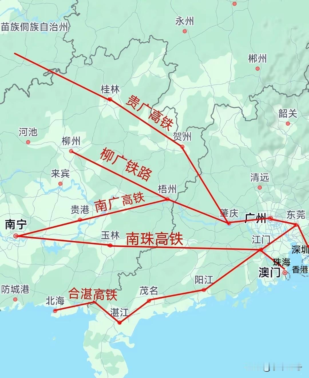 广西五条通往珠三角的铁路! 目前好像只有两条已经开通运行! 其他都在建设当中! 实话实说现在需要那么多连接广东的铁路吗?过去十几二十年,广西大多数人迫于生活只能前往广东打螺丝,拥挤的是汽车客运站,繁忙的卧铺大巴!如今已经淡出了人们的视野! 随着高铁的建设开通,南广高铁最早连接广东的高铁,也成了最繁忙的高铁!如今开启了产业转移,部分产业开始转向西部地区,广西开始投入建设了其他连接广东的高铁,效益会不会不如从前呢?广西铁路布局 广西高铁路网 广西铁路 广西铁路规划 广西为啥那么好 很多人都说广西穷,真的会是这样吗