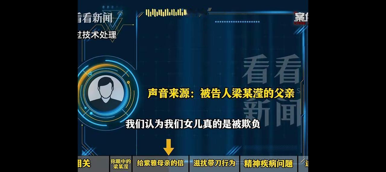 “成都紫雅案”被告人梁某滢父亲的发言内容,真是气死人! 对他的狡辩原话逐句反驳: 1、梁父称“上诉是必须的,坚决不接受!”“我们认为这是防卫过当,因为确实对方先打的我女儿呀”,还觉得“自首情节认定不予采纳,很显然,我觉得太可笑了!”,强调“我女儿头上、手上在流血,我们跟警察说要去医院自己带钱看病,经过警察同意,我们才离开”“她比较喜欢、比较认可华西医院”。 反驳他: 杀害无冤无仇的邻居,可谓罪大恶极,死缓已经是法外施仁,竟然还“坚决不接受”,“上诉是必须的”。这是没有良知、没有愧疚的心态。 “防卫”是无耻之说!世上哪有拿着刀闯到别人家门口吐痰、砸门、捅人的“防卫”? 他女儿当时特意要去最好的华西医院就医,这证明她当时头脑清楚,并未发病。 警察接到保安报警后到达案发现场,见她有伤就让她先就医后处理,这是警察的关怀,“经过警察同意离开”不算她主动自首。 2、梁父说“我女儿小的时候真的是非常听话。她的人设可以这样讲,是非常乖、非常听话,而且善良正直、乐于助人”。 反驳他: 小时候的表现跟她现在杀人没关系,再说了,要是她真的善良正直就不会行凶了。 3、梁父称“不管最后办案机关侦查的结果是谁对谁错,那么我们想通过这样一个环节,表达我们对死者妈妈的一个歉意”“信中的那句‘你的女儿失去了生命,我的女儿失去了自由’,这句话当时是我们写的”,还坚称“我们女儿当时真的是属于防卫!”“在这种情况下,我们认为我们女儿真的是被欺负!对不对?事实上她就是被欺负啊!”“如果换做我们是王女士,这个事情压根不可能发生。我和我的爱人如果发现楼道里面有感觉异常的女人,那我肯定会告诉我们的女儿,一定不要去招惹这个女人”。 反驳他: 他女儿失去自由,是她杀人造成的,而且别人还因为她丧命。他竟然指责被害人“招惹”,这是反咬一口,到底谁在主动“招惹”,谁在“被欺负”,是非曲直一目了然。 被害人没有任何责任,实在要说责任的话,那也是她轻信了保安、低估了凶手的恶毒而开了门。 4、梁父说“从那以后,我女儿身上应该就带有防身的东西,防身东西一开始应该是一个簪子,后头好像是拧螺丝的小锥,也可能是水果刀”。 反驳他: 随身携带小锥、水果刀,这种“精神异常的人”简直就是定时炸弹。作为父亲为什么不制止她?反而放任? 5、梁父称“2022年八九月,女儿情绪升级,会无故狂躁、发脾气、敲东西,我们猜测她精神有问题,但没法确诊”。“网上咨询医生说可能是焦虑、抑郁甚至精神分裂,我去睡眠科问诊,医生说必须她本人来才能判断”。“女儿坚决不承认自己有病、不肯就医,买的焦虑抑郁药她要么扔要么让退,后来买的安神助眠药她偶尔吃”。“她以前从没主动攻击过别人,更没造成过这么严重的后果”。 反驳他: 根据他的介绍,这表明她并不是精神病人,只是“情绪异常”、“狂躁”、“焦虑”等,没有伤过人,案发前既无确诊记录。事后鉴定无前因也无预兆,仅凭它就想赖掉罪责,站不住脚! 6. 梁父表示“我们是一定愿意深深地道歉”“希望我们往和解的方向走”“将来我们会对王紫雅的母亲在养老这个方面,我们会尽我们的能力对她进行一些帮助”。 反驳他: 谁又乐意跟一个杀女之仇的恶人“和解”呢?不是强人所难吗?无论被害人家属谅解不谅解,你都应该有愧疚感、诚心道歉、主动赔偿,而不是把“口头承诺养老”作为讨价还价的底气。