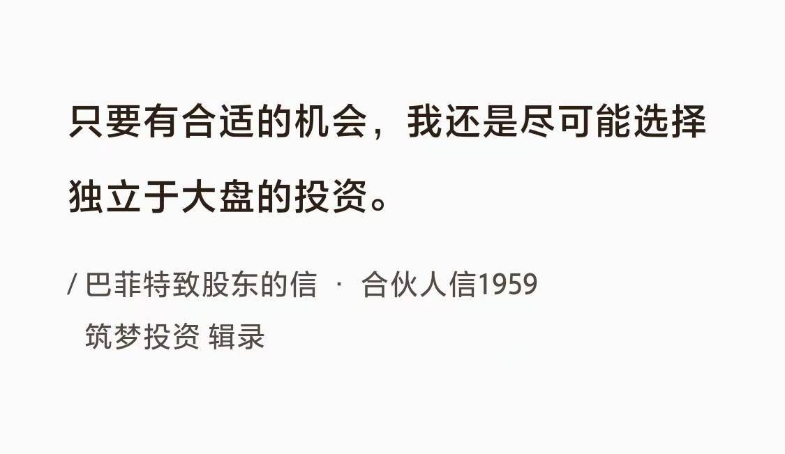 巴菲特曰:“只要有合适的机会,我还是尽可能选择独立于大盘的投资。”