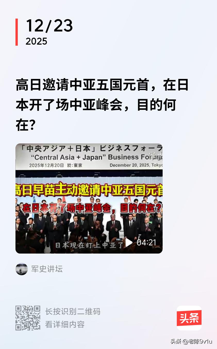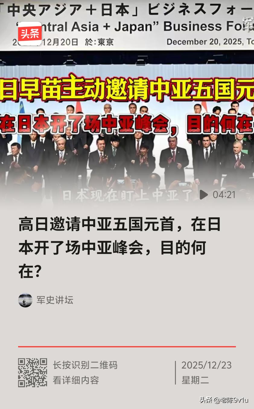 近期日本突然“抱紧”中亚,有多方面原因: 资源获取层面 能源资源是日本强化中亚外交的核心关切。中亚地区拥有丰富的油气储量和稀有金属矿产,尤其是哈萨克斯坦的铀矿储备。日本直接宣称要从中亚获得关键矿产,试图加强关键矿产供应链,摆脱在关键矿产领域对中国的依赖。 配合美国战略 美国重视中亚地区战略意义,11月6日,美国总统特朗普在白宫主持“C5 + 1”(中亚五国与美国)峰会,高市内阁选择在美国与中亚峰会召开后的50多天就举行日本与中亚峰会,这或是为配合美国中亚战略实施的外交行动,与美国合作构建关键资源供应链。 地缘政治层面 ● 削弱俄罗斯影响力:借经济援助、投资与贸易安排,推动中亚国家在外交上更多“向东看”,从而在一定程度上削弱俄罗斯的影响力。 ● 平衡地缘政治压力:平衡与牵制俄罗斯在远东地区对日本构成的地缘政治压力。 ● 扩大自身影响力:日本想要在中俄周边地区安插棋子,扩大其在该地区的影响力。中亚成为日本“远交近攻”战略的重要抓手,日方力推绕开俄罗斯的“里海航线”和连接亚欧的“中央走廊”建设,试图将影响力嵌入欧亚腹地。 通道建设层面 推动“跨里海”通道建设,以使中亚连接中东地区,增强其在国际运输和贸易格局中的地位和话语权。
