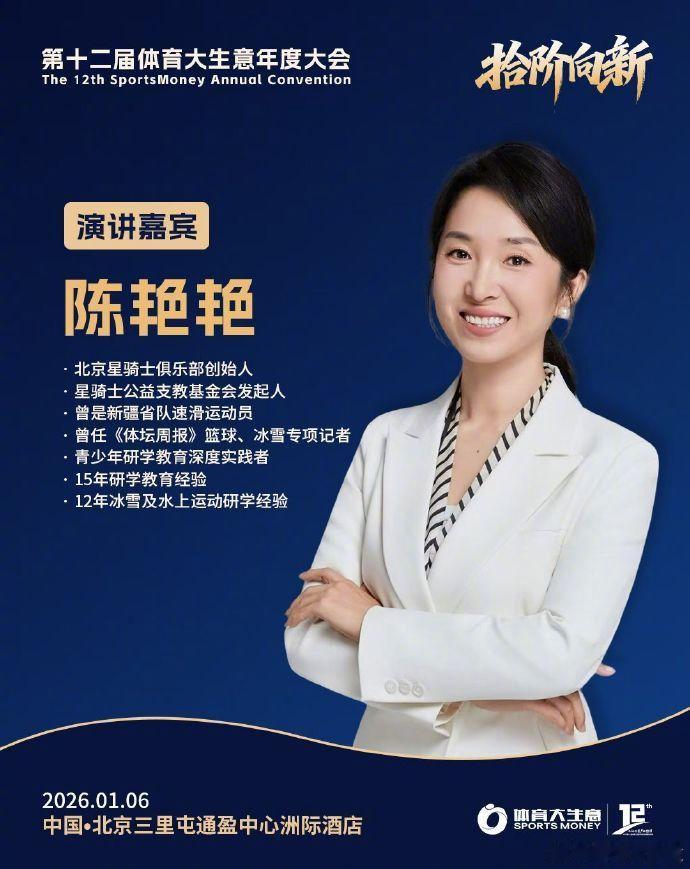 体育大生意年度评选 2026年1月6日,第12届体育大生意年度大会暨颁奖盛典,部分重磅嘉宾抢先看。白天大会,体育行业大佬们将为2025体育产业复盘,分享精彩观点,并预见更美好的未来;颁奖盛典,让我们共同见证体育产业年度榜样的诞生!