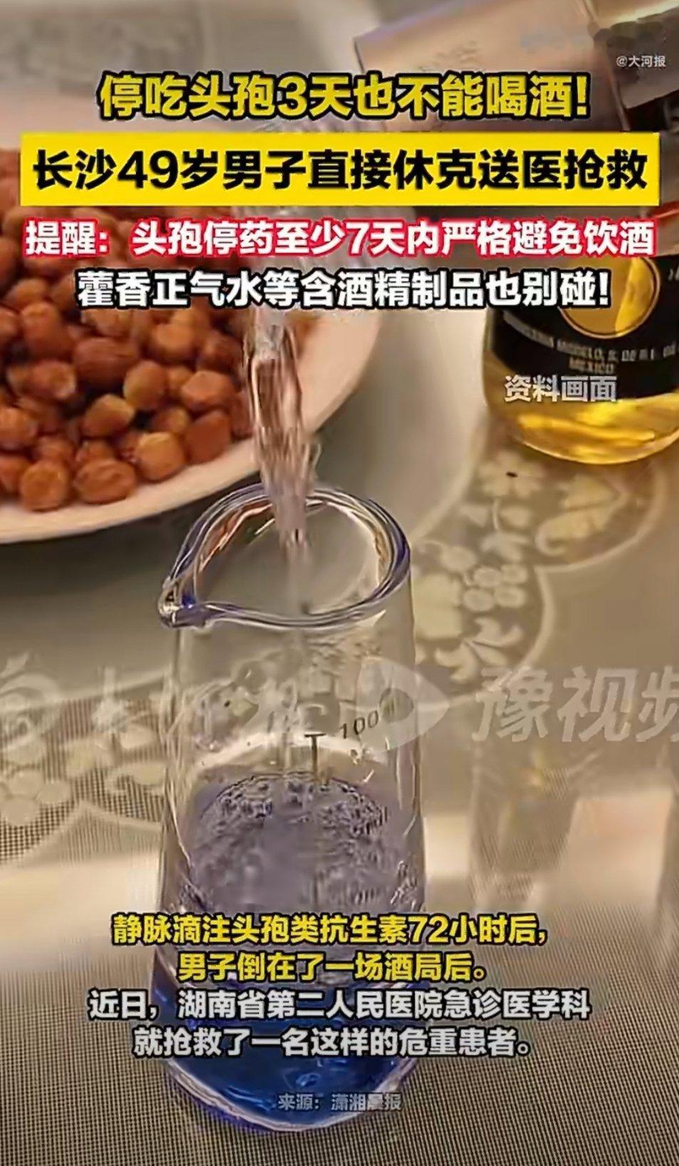 男子头孢停药72小时喝酒后休克之前一位老大夫给的建议是,吃头孢前七天和后七天,都
