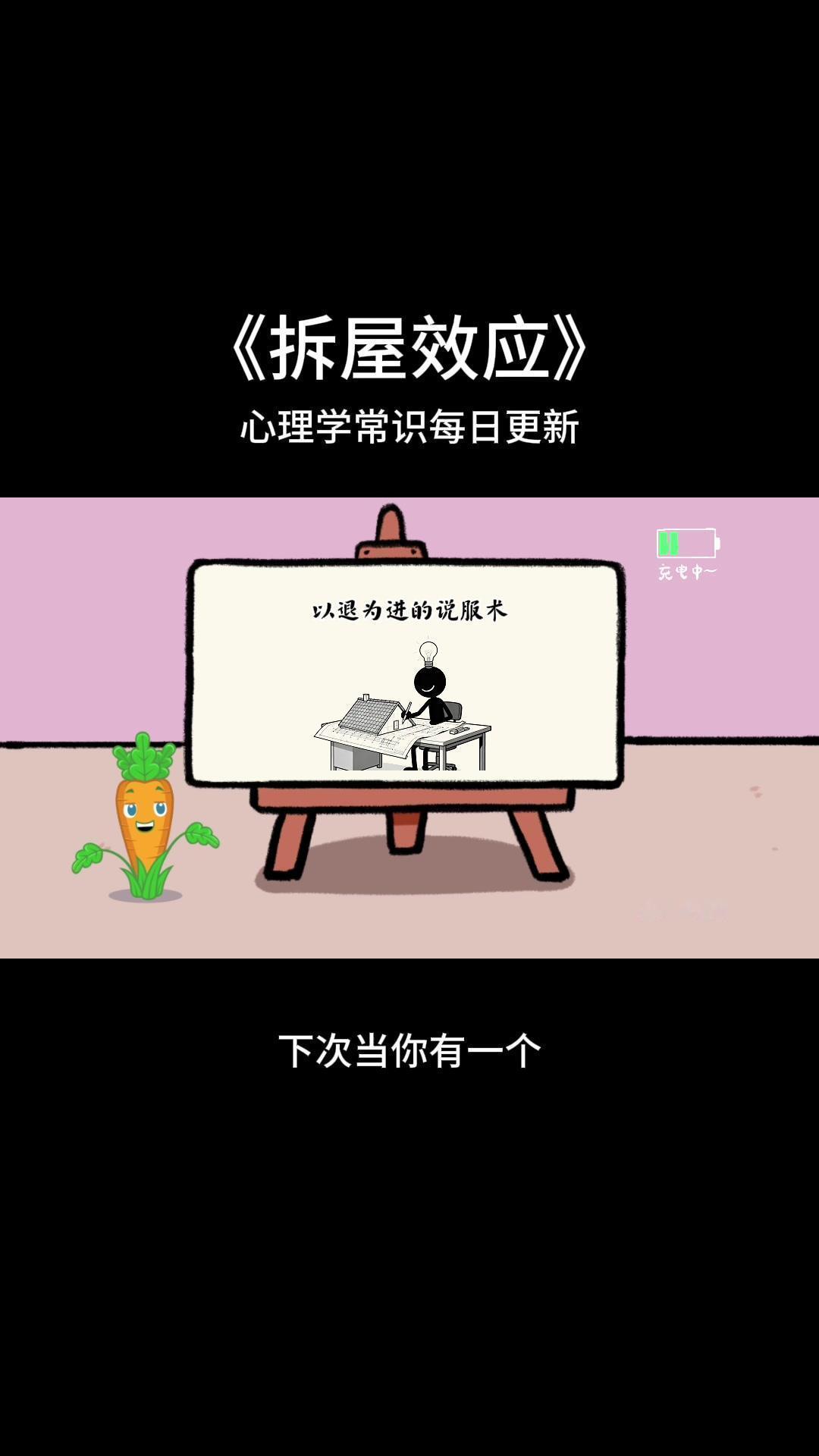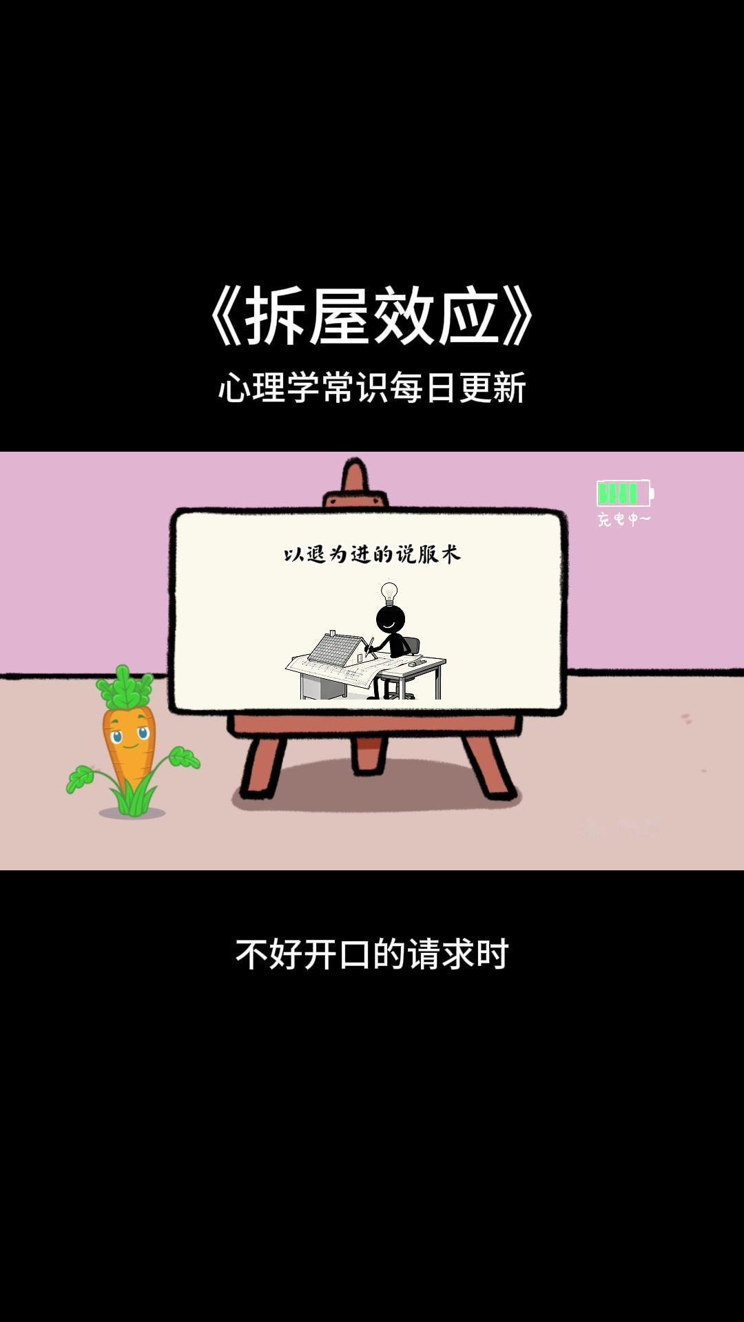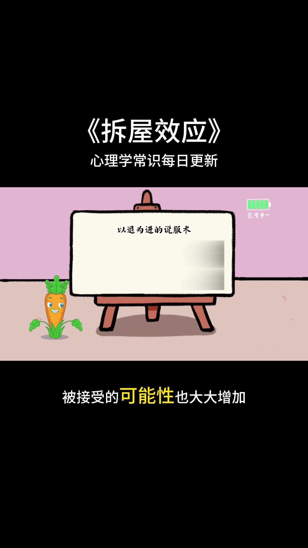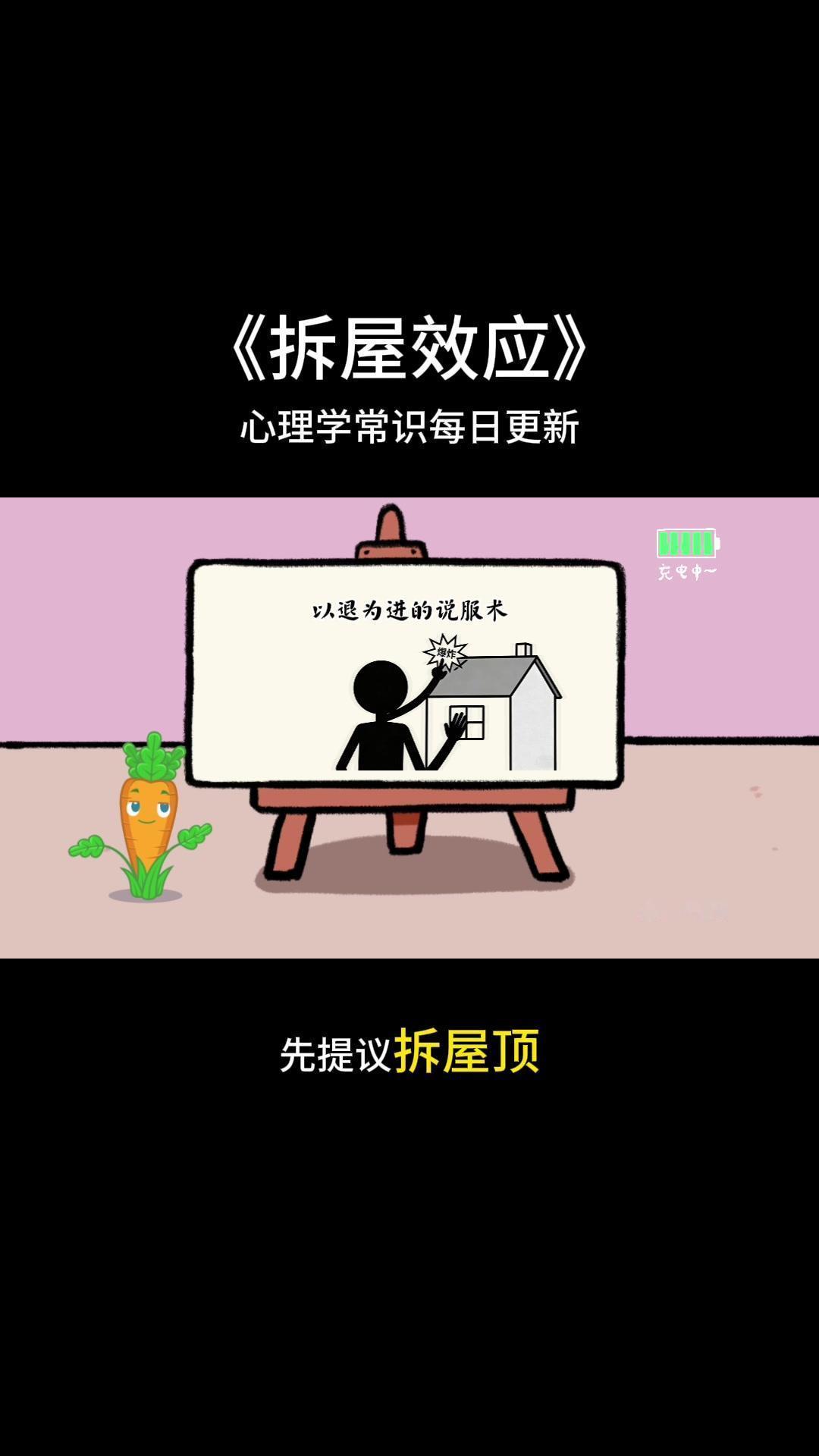 怎么让别人更容易答应你?先提个过分的要求试试!这就是心理学里的拆屋效应。 核心是先抛出一个巨大甚至不合理的请求,对方大概率会拒绝,这时他会产生轻微内疚感。接着顺势提出真正想要的小要求,前后对比下,第二个请求就显得通情达理,被接受的可能性大大增加。 就像鲁迅先生说的,想开窗,先提议拆屋顶,这是以退为进的沟通智慧。下次有难开口的请求,不妨先设计一个“被拒绝的屋顶”。