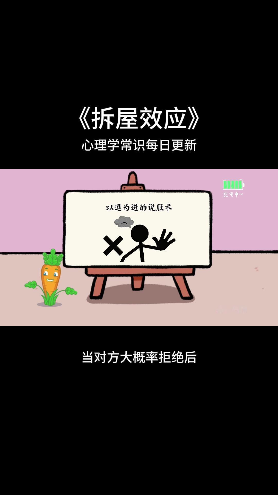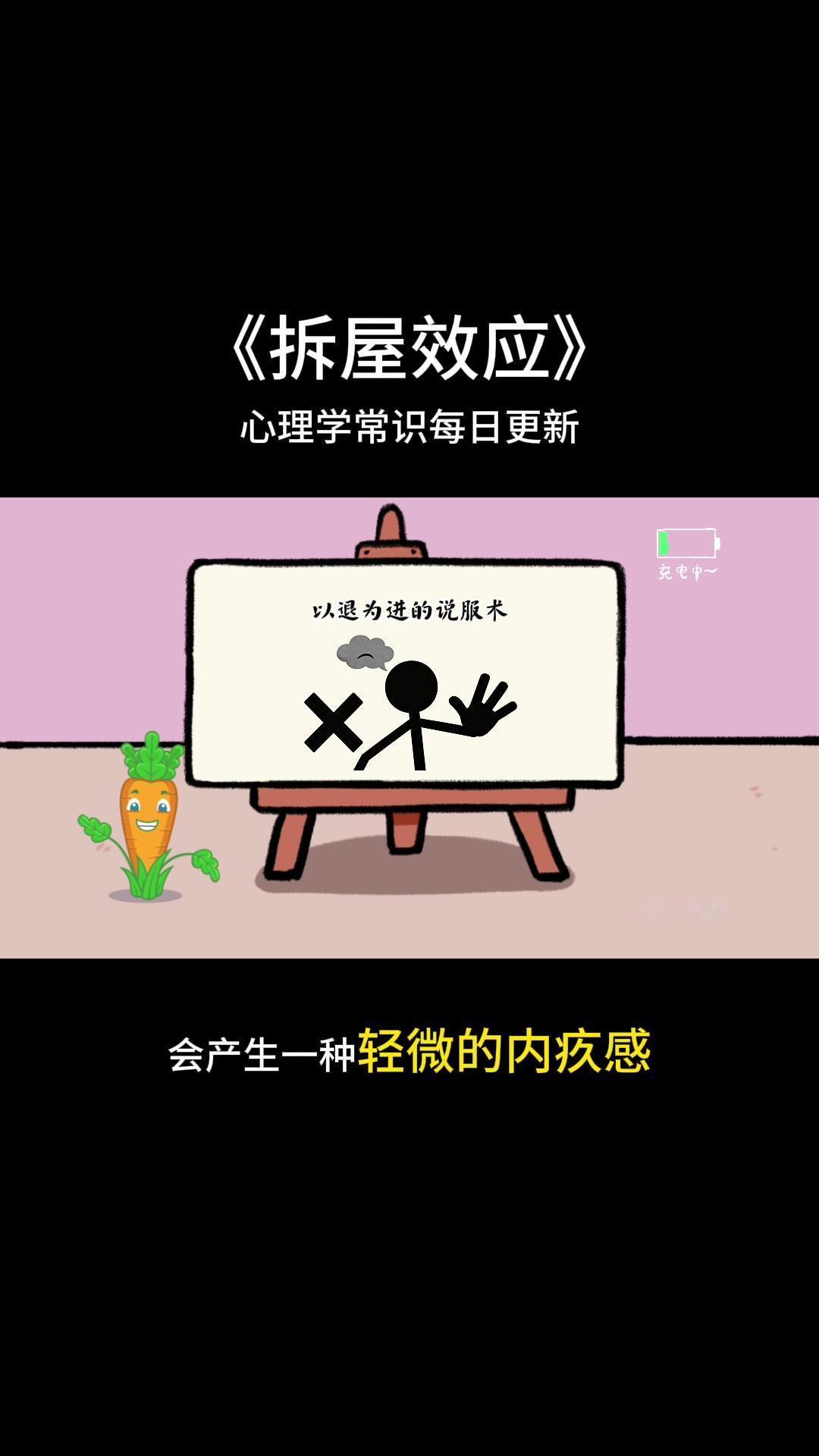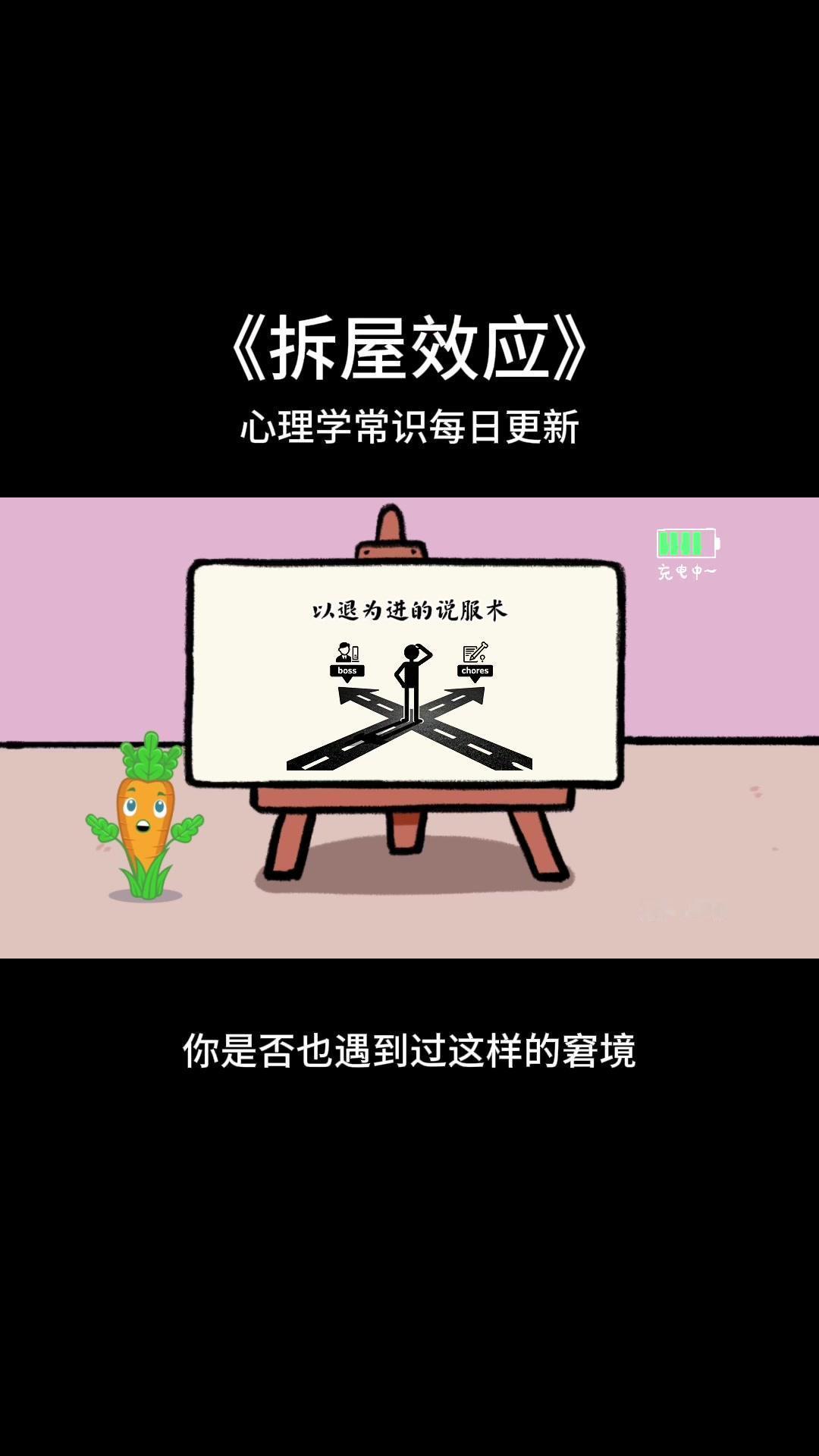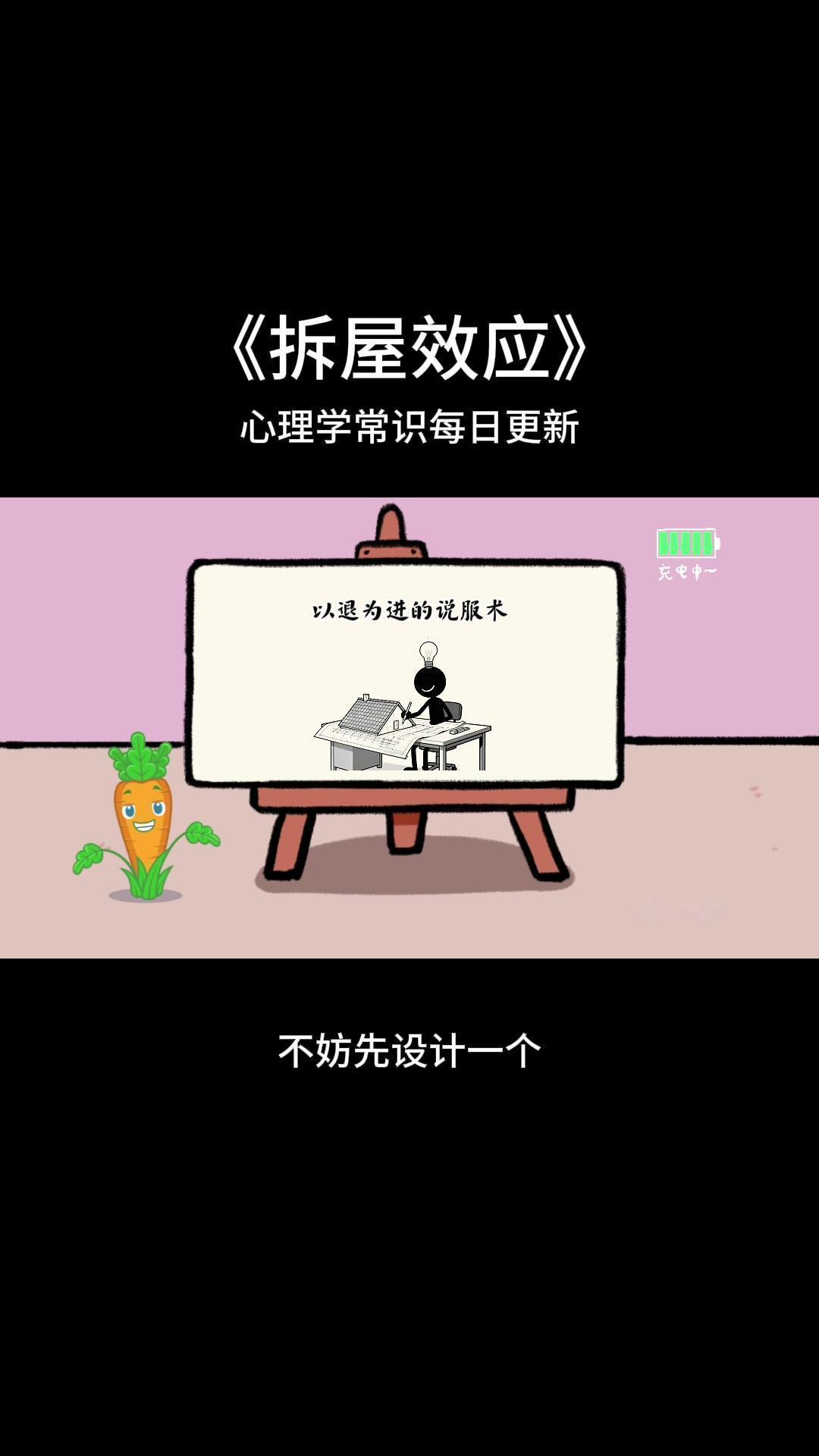 怎么让别人更容易答应你?先提个过分的要求试试!这就是心理学里的拆屋效应。 核心是先抛出一个巨大甚至不合理的请求,对方大概率会拒绝,这时他会产生轻微内疚感。接着顺势提出真正想要的小要求,前后对比下,第二个请求就显得通情达理,被接受的可能性大大增加。 就像鲁迅先生说的,想开窗,先提议拆屋顶,这是以退为进的沟通智慧。下次有难开口的请求,不妨先设计一个“被拒绝的屋顶”。