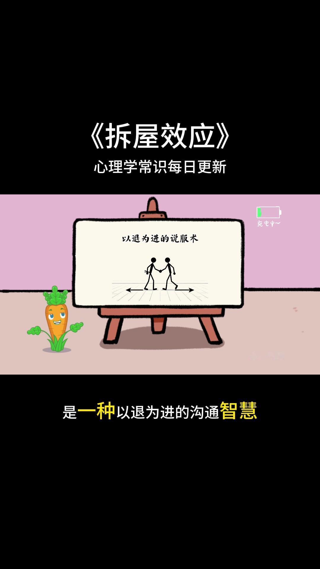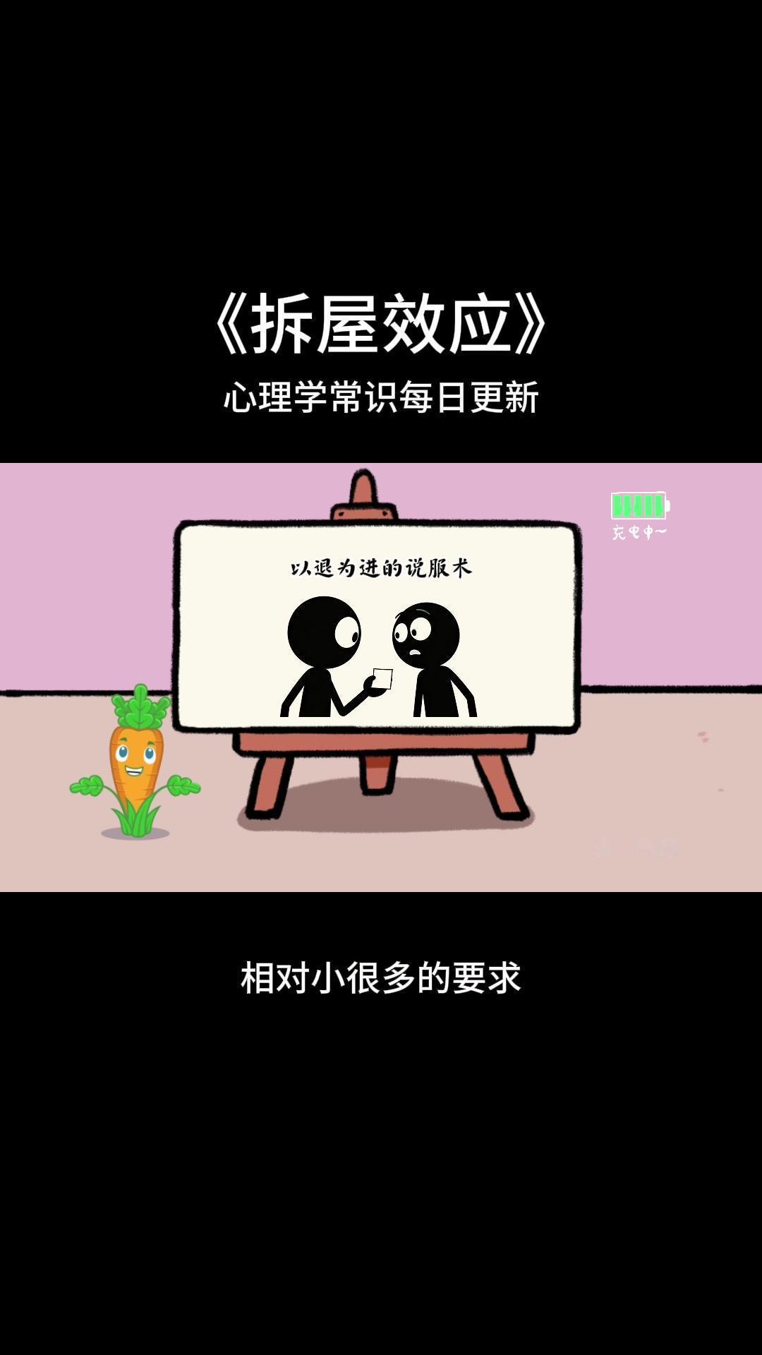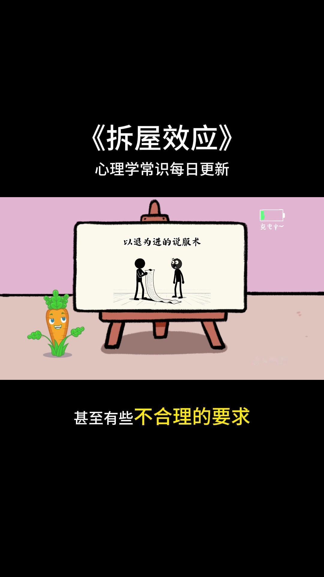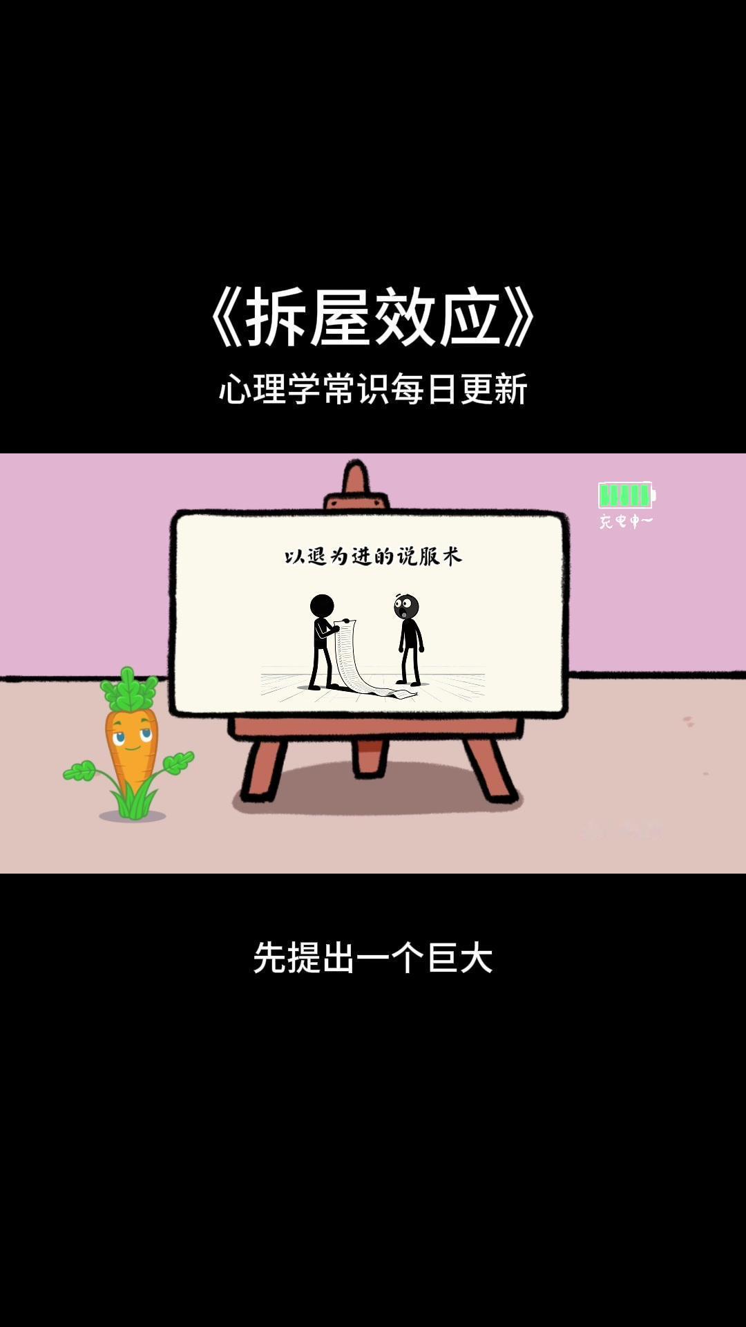 怎么让别人更容易答应你?先提个过分的要求试试!这就是心理学里的拆屋效应。 核心是先抛出一个巨大甚至不合理的请求,对方大概率会拒绝,这时他会产生轻微内疚感。接着顺势提出真正想要的小要求,前后对比下,第二个请求就显得通情达理,被接受的可能性大大增加。 就像鲁迅先生说的,想开窗,先提议拆屋顶,这是以退为进的沟通智慧。下次有难开口的请求,不妨先设计一个“被拒绝的屋顶”。