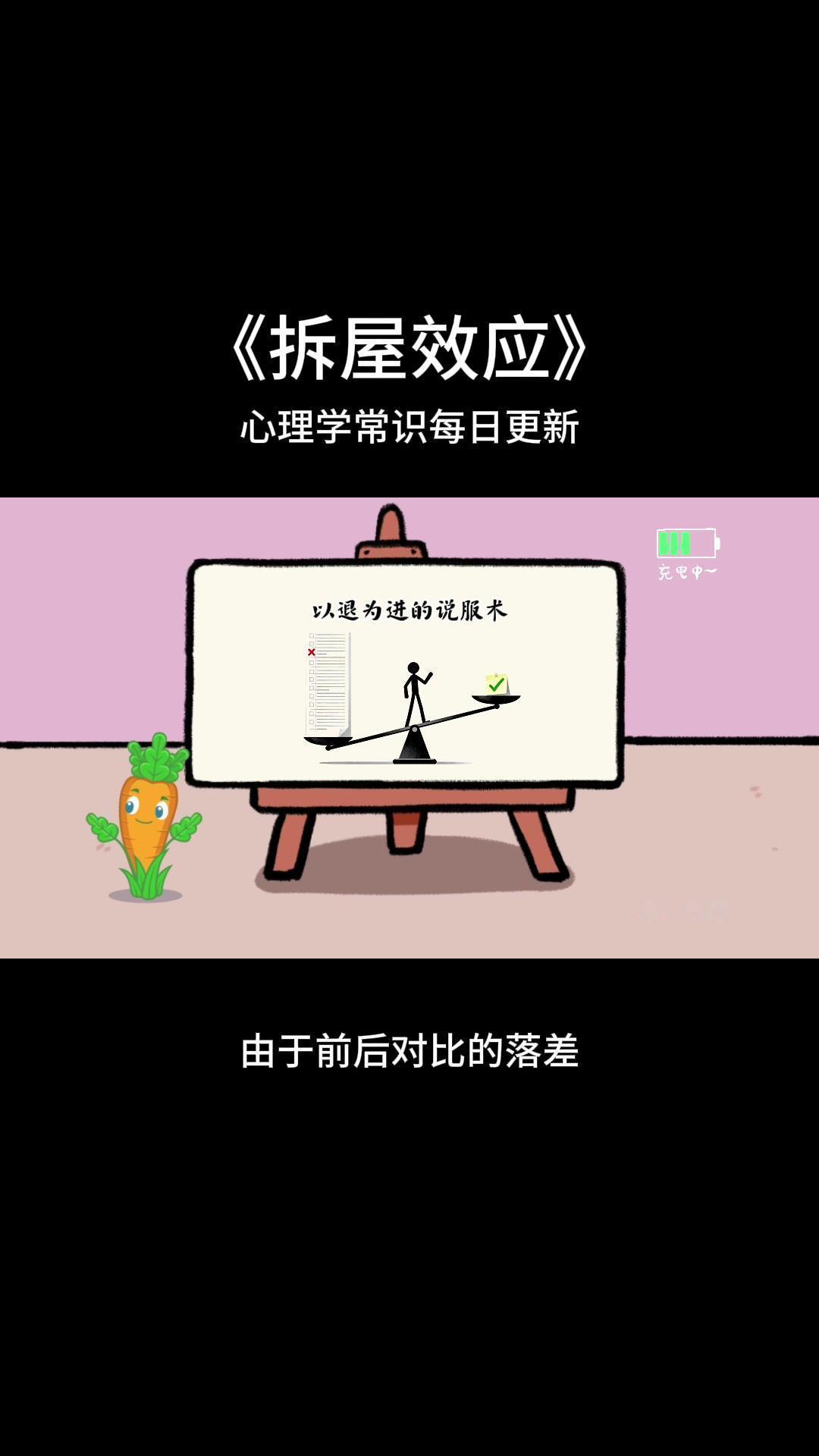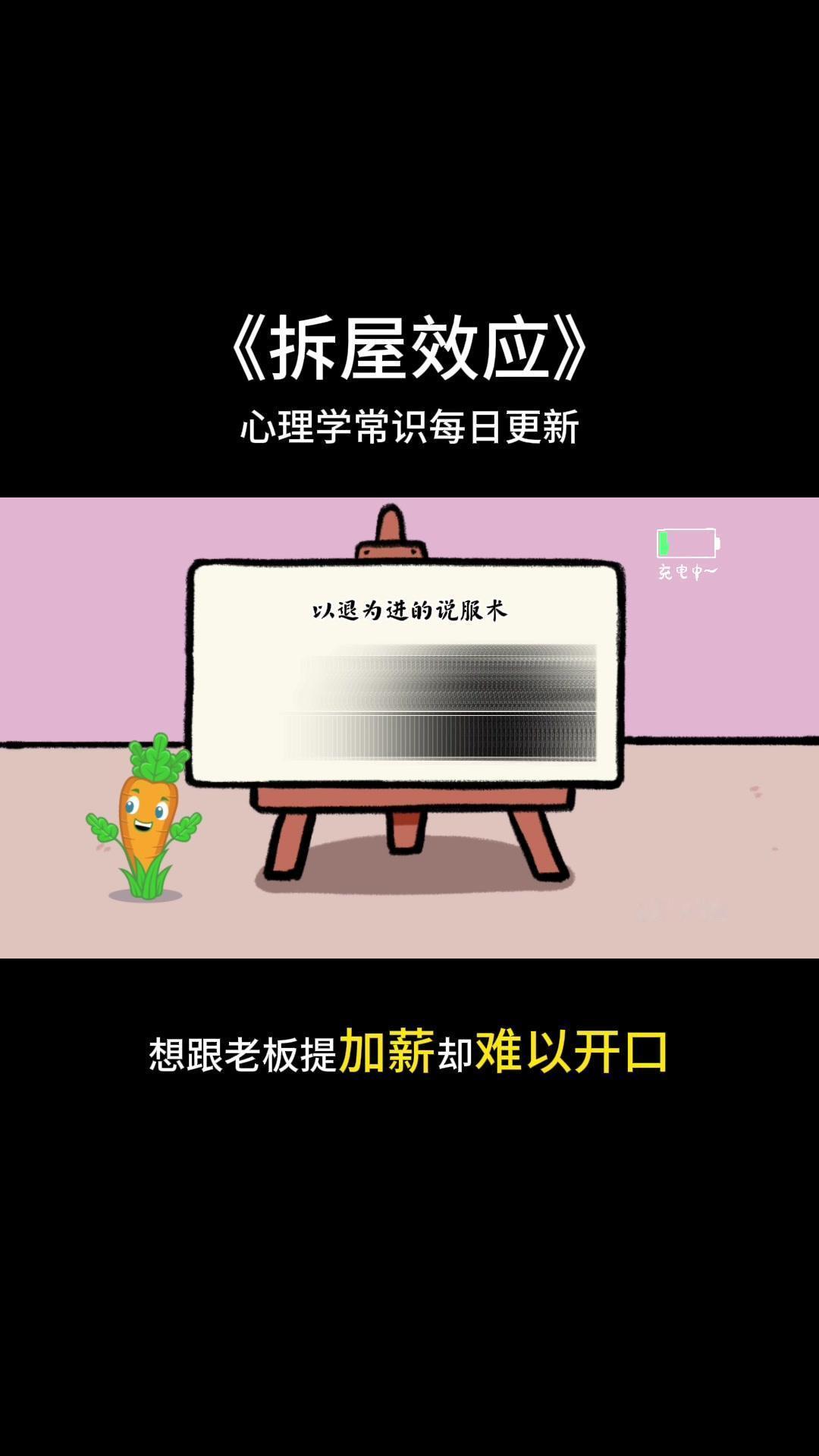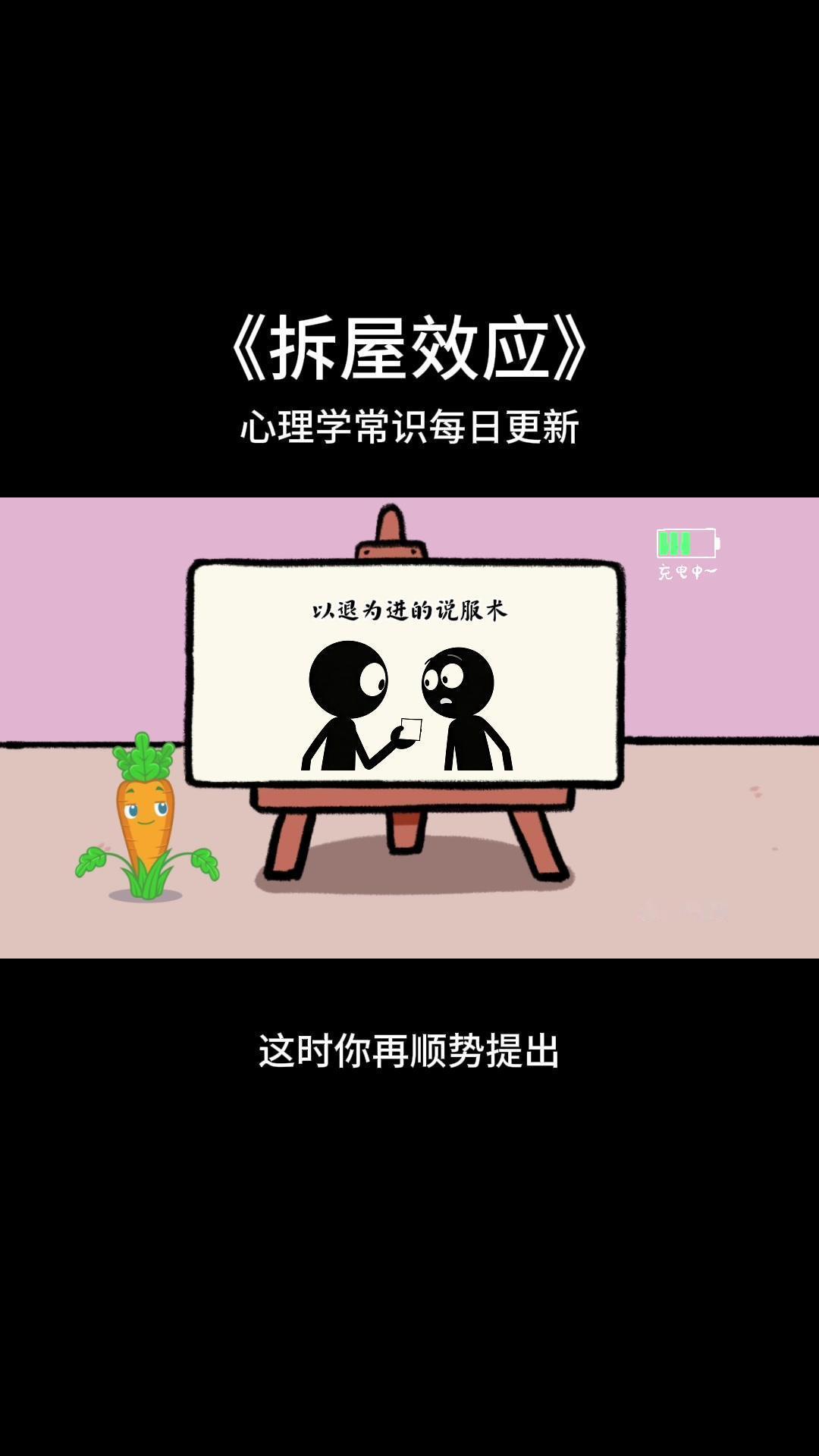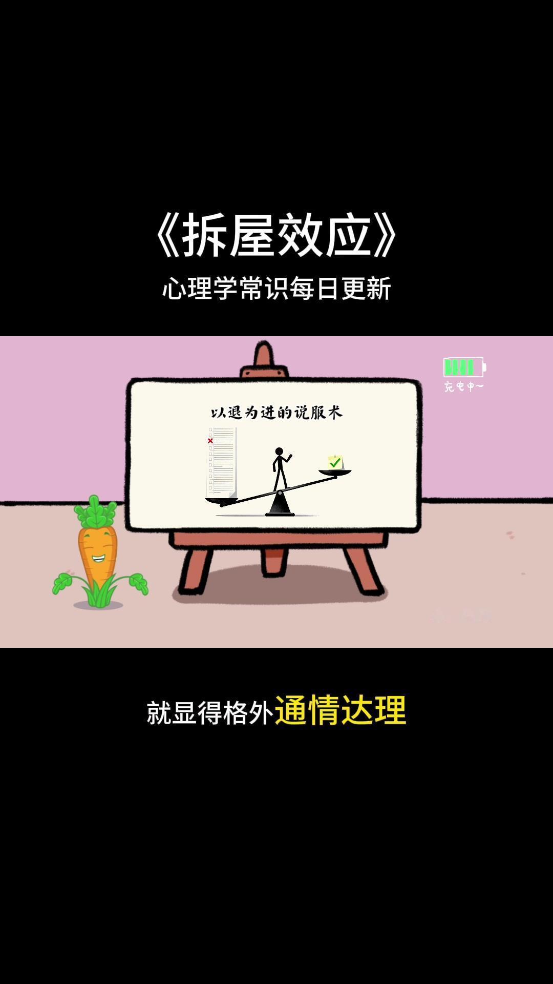 怎么让别人更容易答应你?先提个过分的要求试试!这就是心理学里的拆屋效应。 核心是先抛出一个巨大甚至不合理的请求,对方大概率会拒绝,这时他会产生轻微内疚感。接着顺势提出真正想要的小要求,前后对比下,第二个请求就显得通情达理,被接受的可能性大大增加。 就像鲁迅先生说的,想开窗,先提议拆屋顶,这是以退为进的沟通智慧。下次有难开口的请求,不妨先设计一个“被拒绝的屋顶”。