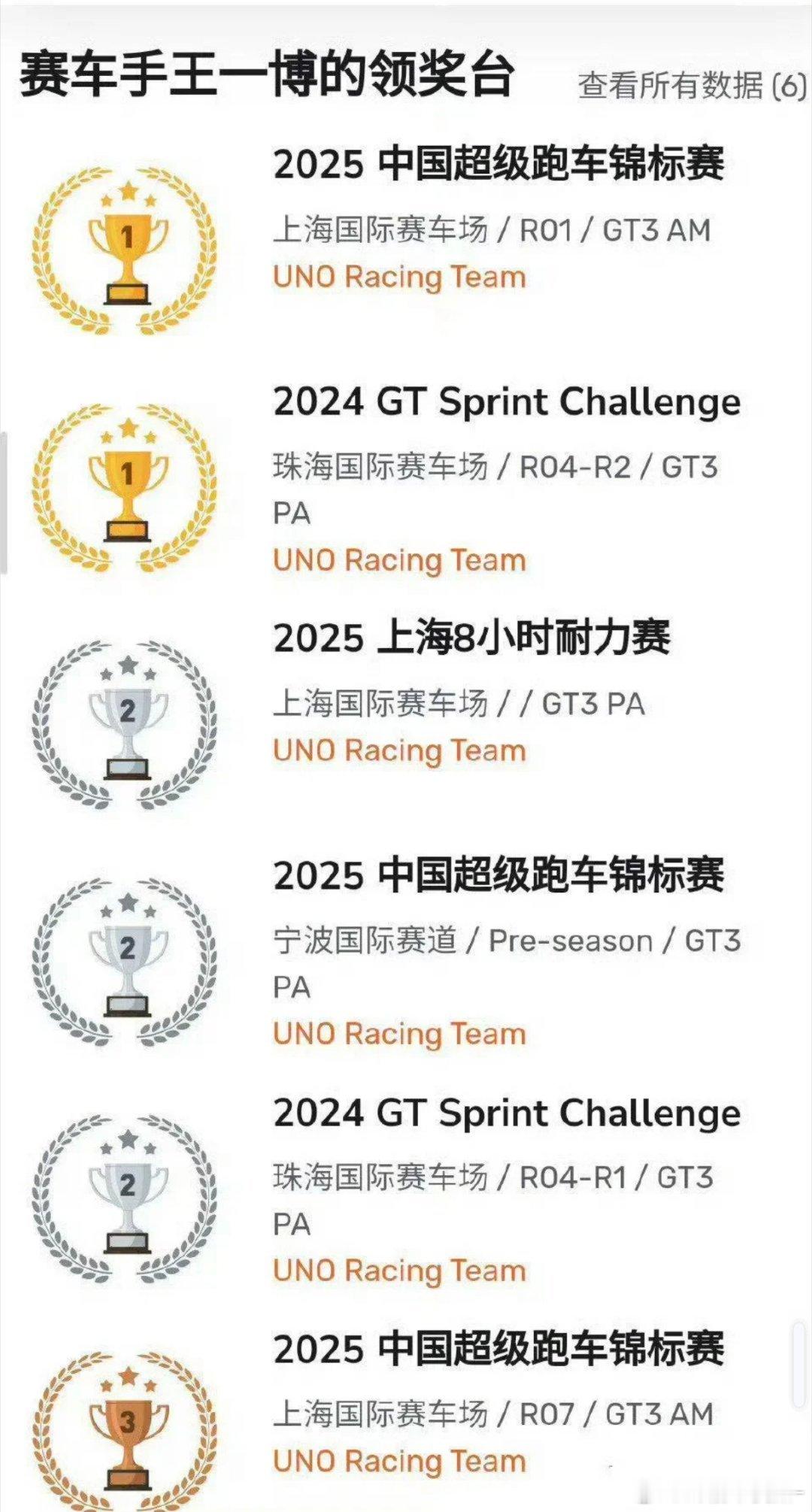 原来王一博已经开过这么多赛车皮肤 也拿了好多奖欸