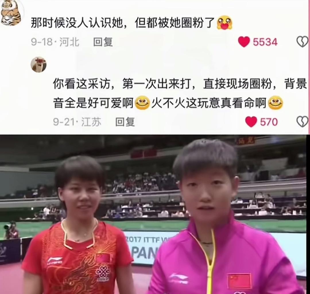 这是莎莎第一次接受记者采访。 不知道说什么好,眼睛左顾右看,眼神清明,笑着露出小虎牙。下意识的想求助旁边的姐姐。 记者问:“现在还很开心吗?” 莎莎:“是的,现在还很开心,局势那么下风的情况下,最后还是我们赢了。“ 最后被要求在镜头前签字,可爱的莎莎拿着笔再三确认后,才签上自己的名字。 那时候还是签孙颖莎三个字呢,大家发现没? 这是莎莎的采访首秀,放出来,网上就炸锅了。 ”太可爱了,没人认识她,但被她圈粉了。“ ”你看这采访,第一次出来打,直接现场圈粉,背景全是好可爱呀,火了都是命啊!“ 我也被莎莎圈粉了,你们被她的可爱圈粉了吗?