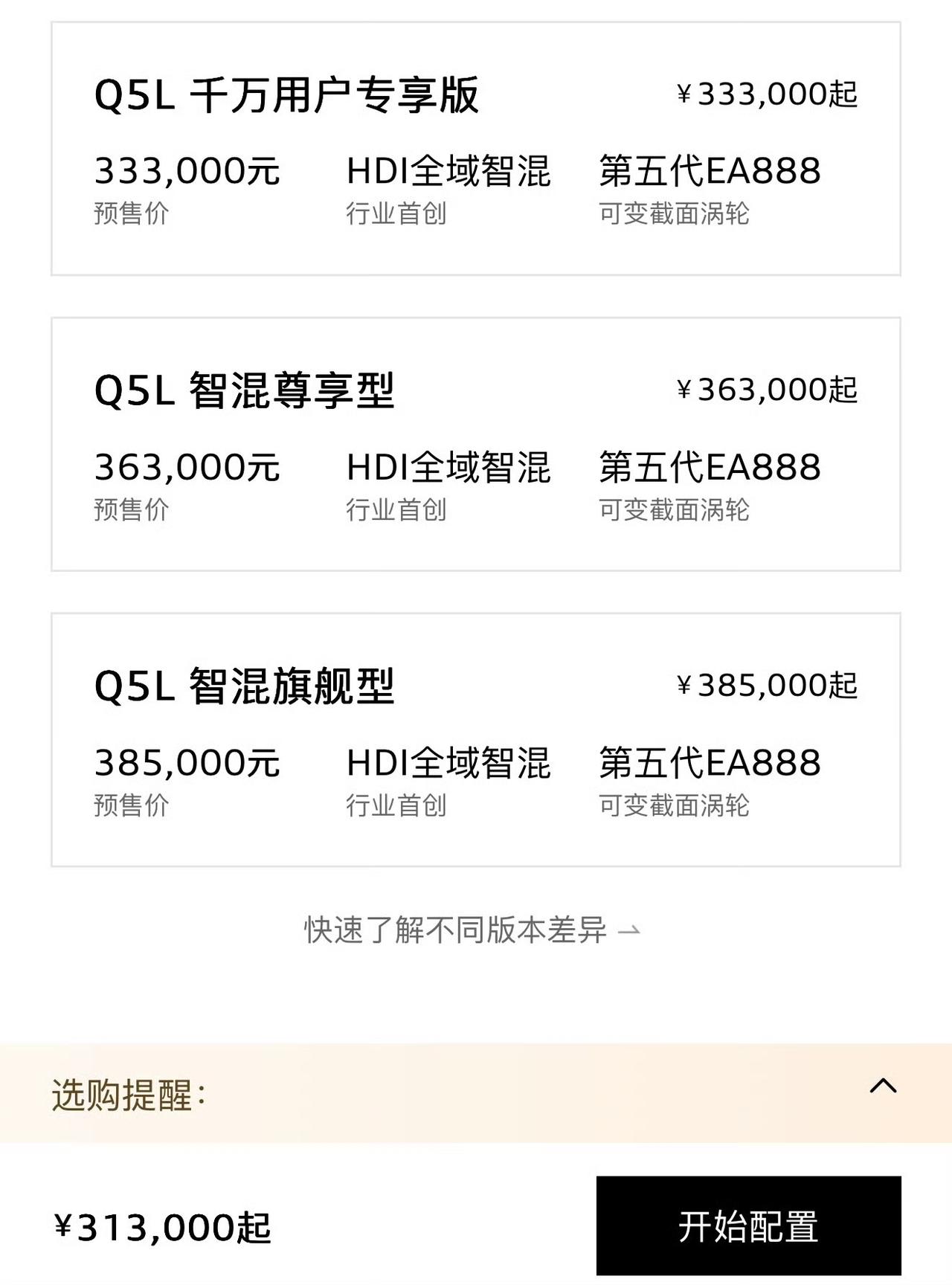 新一代Q5L偷偷上市了,31个出头可以买到,结果全网都没有什么声音,可以想象确实没有营销经费了! 以前40万级别奥迪Q5L是必推荐的车型,结果现在连40万这个价格都没有维持住。现在最贵的版本也没有超过40万,而且这个还是刚上市的价格,一般这种豪华车型都会上市一段时间之后就会降价促销。 各位是怎么看的?欢迎评论区留言。