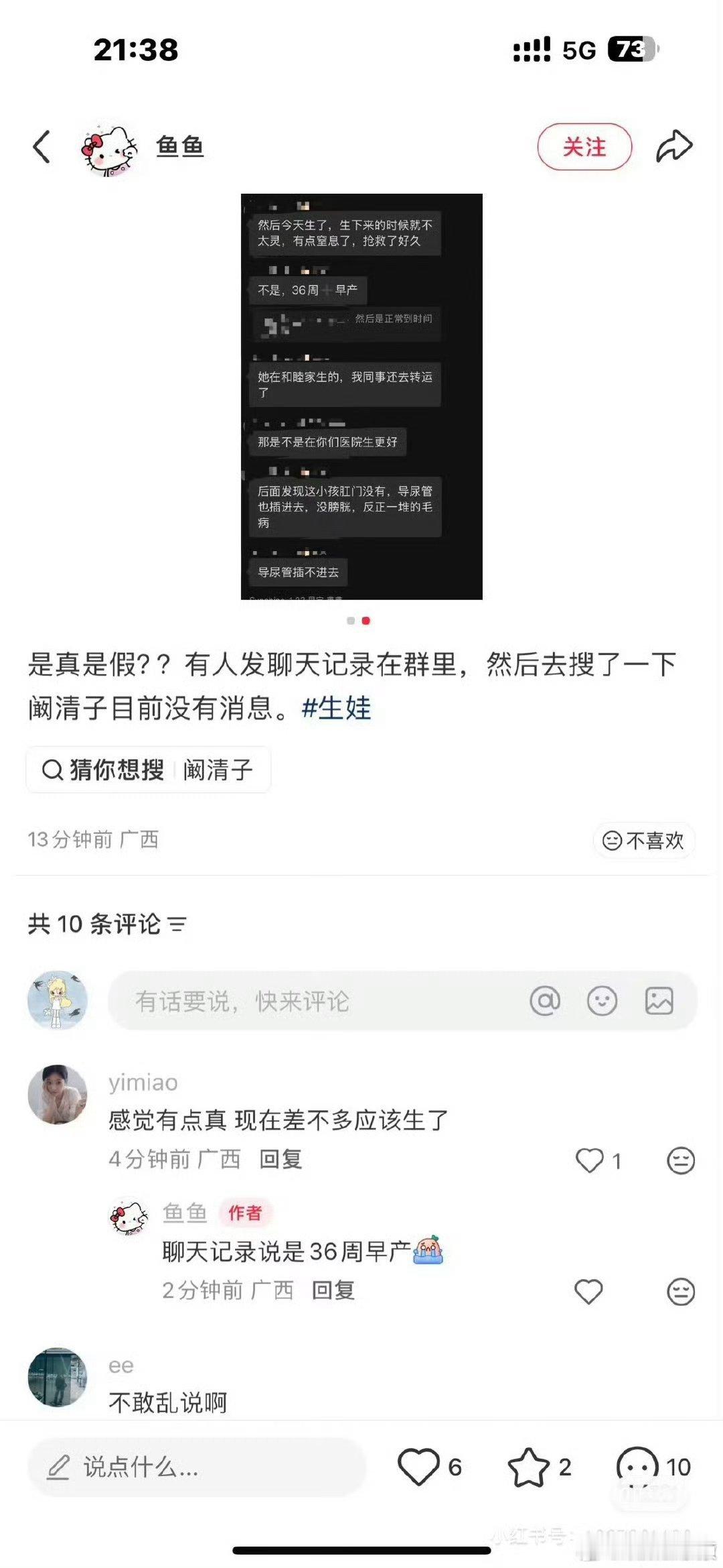 随便爆料别人隐私真的好吗?有人爆料阚清子23日早生了女宝宝,但是宝宝因先天畸