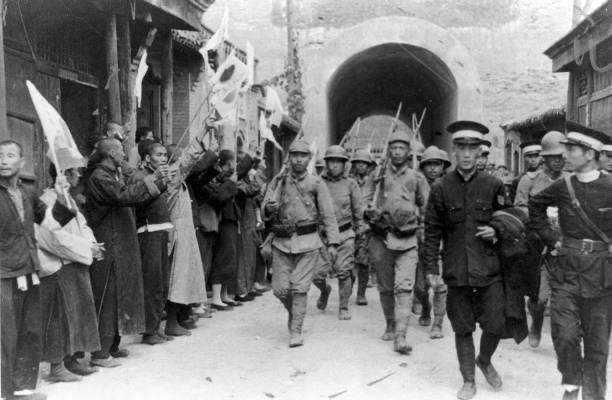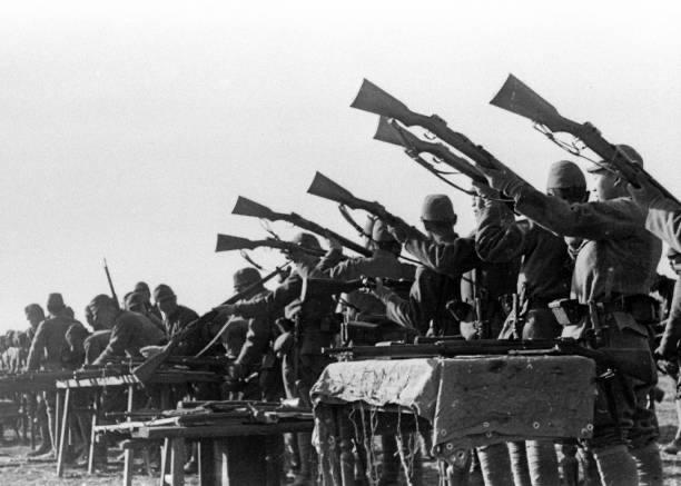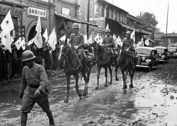 保定沦陷期间,日寇真实历史影像! 图一至图二:9月24日,日寇骑兵正预备进入保定城。 图三:9月24日,日寇在当地警察引导下进入保定城。 图四:9月25日,日寇列队进入保定,鬼子兵们骑着高头大马引导后面小车前行,耀武扬威。 街道两旁挥舞膏药旗迎接他们的所谓民众应该是日侨。道旁“车站大街邮局”的标牌非常醒目,该处应该就是保定火车站附近。有当地人看得出是哪里不?该建筑如今尚在否? 图五:占领保定的日寇正在挥舞膏药旗,高呼天蝗万碎!(时间不详) 图六:倭寇占领保定城北一座铁路桥,该桥已被断裂,不知是中国军队撤退前自行炸毁还是日机轰炸所致。(时间不详) 图六:9月24日,日寇入城后开始大肆搜捕抗日志士。 图七:1937年9月,倭寇富士Koron 新闻社1名女记者与装甲车合影。 图八:1937年9月30日,倭寇在保定城里设立检查站。 告示上写着“日本军司令部许可,证无者禁止”!难道是开始颁发“良民证”了?恰恰如此,说明仍有抗日志士在坚持抵抗。 图九:1938年12月14日,倭寇正在列队检查步枪。应该是有上级鬼子军官来视察,故而集体表演如何检修枪械。老照片 保定 抗日战争 欢迎大家关注本人微信视频号:“历史影像持续更新”! 结语:欢迎朋友们关注、点赞,评论区发表宝贵观点与建议,并‬将来自己‬感兴趣‬的‬历史‬事件‬留言‬下来‬。我‬将尽力‬搜集‬资料‬,整理成篇,与‬您‬共勉‬! 您的慷慨支持是我持续创作更新的永续动力。文中常有时间地点不详或地名无法译出之状况,若您有案可查,请帮忙斧正补充!