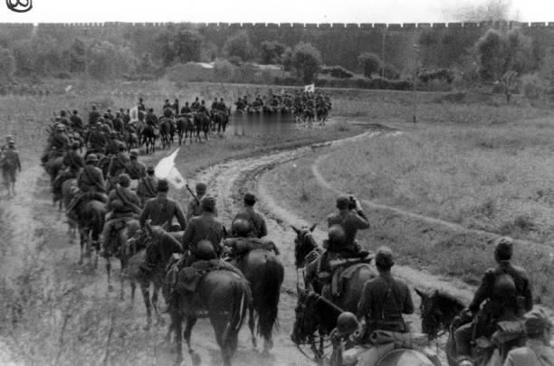 保定沦陷期间,日寇真实历史影像! 图一至图二:9月24日,日寇骑兵正预备进入保