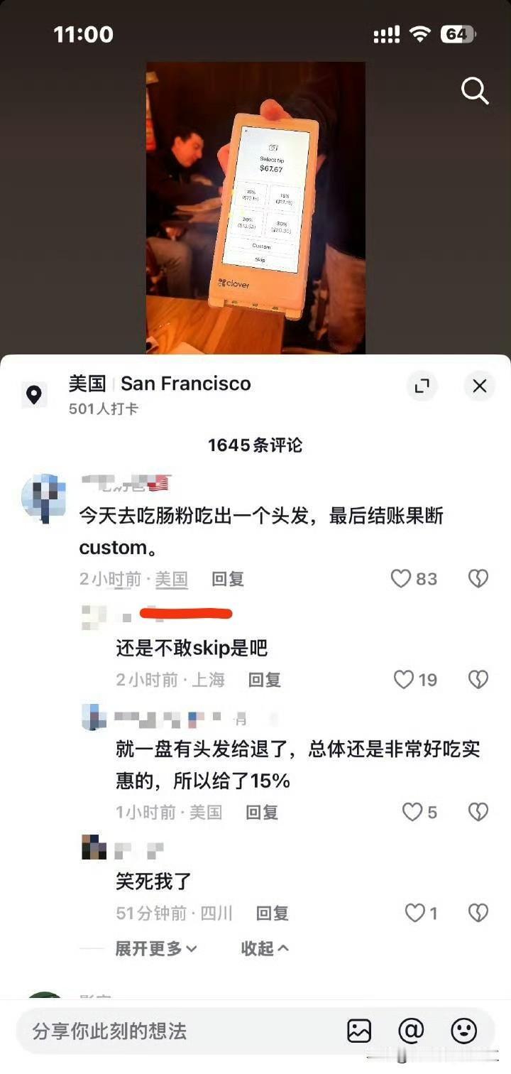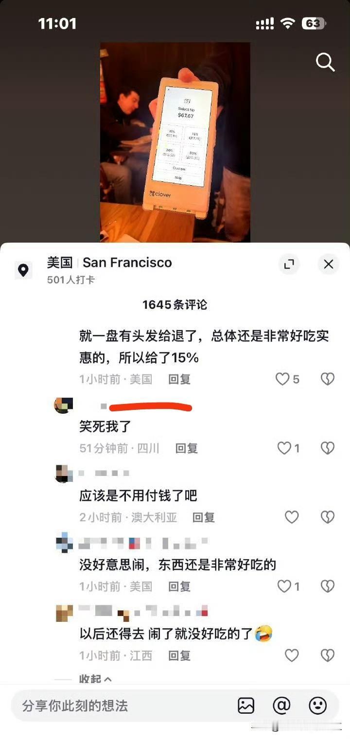 网友分享,在美国吃出头发还给小费,活在美国的人们是如何开始默认这种事情合理的?