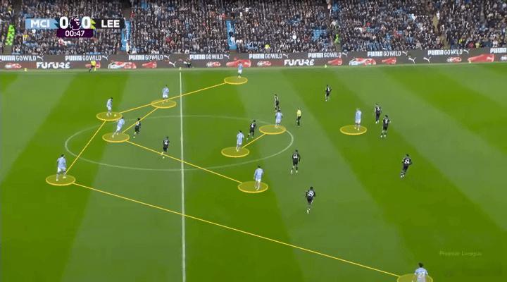 诺丁汉森林vs曼城 曼城的圣诞树瓜迪奥拉还是一个善于思考,善于自我纠正的教练。从上赛季到本赛季开始阶段,其实曼城的基本阵型一直是4141,直到一场失利刺痛了瓜帅。那是10月底联赛第9轮,曼城客场0-1输给了维拉。瓜帅可能看到了问题所在,单后腰的防守太薄弱了,保护不了弧顶,你让人家一个右后卫卡什在弧顶轮逆足左脚打出世界波,成何体统?!任何一个教练,本质上不是说过于保守,几乎每个教练想的都是我如何先做好防守。瓜迪奥拉这不是创造发明,而是沿袭了安切洛蒂在米兰时期的圣诞树阵型。三个中场密集在中路,身前的俩前腰在在中路,进可攻退可守。从第10轮踢伯恩茅斯开始,曼城就变阵为4321圣诞树,8场7胜1负,唯一输的一场是输给了纽卡斯尔。而且这8场曼城的首发几乎是一成不变,唯一的变化就是靠左的前腰,看多库的状态好坏。门将:多纳鲁马后卫:努内斯、迪亚斯、格瓦迪奥尔、奥莱利中场:席尔瓦、冈萨雷斯、赖因德斯前腰:切尔基、福登中锋:哈兰德比如踢桑德兰那场,多库首发打靠左的前腰,福登就落位右中场,赖因德斯替补。反正曼城这套阵容异常稳定,最近三轮联赛连续三个3-0拿下各种档次的对手。这圣诞树就那么好用吗?从防守角度来说,人员密集在中路,对方确实很难通过短传组织进攻。而且三个中场对后卫线保护足够,对方打长传,出来的二点球还是曼城的。瓜帅正在放弃边锋踩着边线踢的踢法,而是让他们在肋部操作,多库、切尔基、尤其福登,都有射门能力,这种踢法恰好让福登的弧顶发炮得到了充分发挥。但不要错误以为曼城就放弃了边路。边后卫助攻上来,与前腰配合,在肋部发起距离短的传中,哈兰德的头球功夫还是见长。曼城3-0利物浦那场比较典型,哈兰德的头球,冈萨雷斯的中路怒射,多库内切弧顶发炮,算是圣诞树阵型的经典之作。最近的三个对手无法破解曼城的这种密集中路的踢法,森林估计也够呛,这个赛季的森林不是努诺带的那个两翼齐飞的森林了。