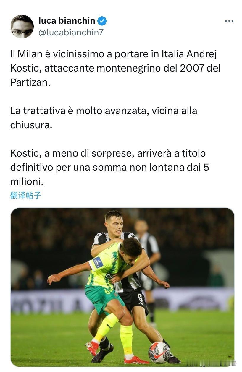 米兰冬季窗口第二签!科斯蒂奇加盟米兰!菲尔克鲁格刚刚敲定米兰管理层就马不停蹄的赶往塞尔维亚与塞尔维亚游击队谈判年轻中锋科斯蒂奇,不得不说塔雷还是很有效率的,一天时间科斯蒂奇也搞定了。 科斯蒂奇我们先不谈能力,就这个颜值那是相当可以,有当年米兰男模队的水准,其实当年拉泽蒂奇颜值也可以,希望科斯蒂奇不要像前辈拉泽蒂奇那样运气不好,现在米兰有塔雷在,估计从前南地区和北欧地区的进货会比以前多不少,这样彩票会多一些,个人想法前南球员相对而言还是很不错的,基本功扎实,也有斗志,米兰需要一些像帕夫洛维奇那样有斗志的球员。 谈完颜值就说说能力吧,看集锦这个孩子就是非常典型的前南球员,基本功比较扎实,脚下拿的住球,头上有功夫,属于攻城锤式球员,在禁区内能撞能抗,有很多不讲道理的要位,落点判断与准星可能差点,但人能在禁区内站住,射门可以慢慢练,毕竟孩子还年轻,可以对未来有更多期待。