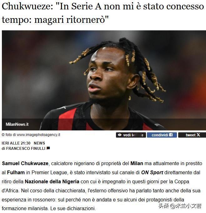 丘库埃泽!丘库埃泽接受采访表示米兰永远是我的家,如果有可能我还是期待能回到米兰,哪怕不是现在。 丘库埃泽谈到了西甲与英超和意甲的区别,他说不存在哪个联赛更简单,而是意甲有他独到的比赛风格,而自己当年在米兰对意甲的适应不够,他对意甲联赛并没有充分了解,甚至对球队战术也没有完全理解。丘库埃泽这样说就不对了,当年来的时候是足球爱好者,明明给了你绝对的自由度,根本就没有战术,众所周知足球爱好者就没有战术,他希望你能像莱奥那样自己解决问题,不是你不适应,而是你根本做不到。 当然除了足球爱好者问题之外,丘库埃泽自身能力也有一定局限性,他更适合禁区前的位置,就是在大禁区的右侧前沿一带,但米兰的边锋更要套边突破,所以足球爱好者之后的教练也用不明白丘库埃泽,他属于非典型边锋,不是很善于突破,速度也不快,但他在禁区前沿带球传球威胁巨大,我们一直把他当莱奥用,肯定是不行。