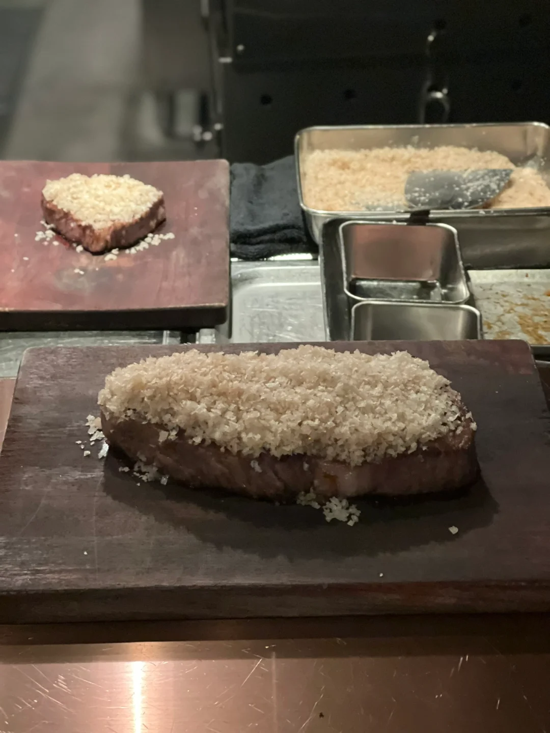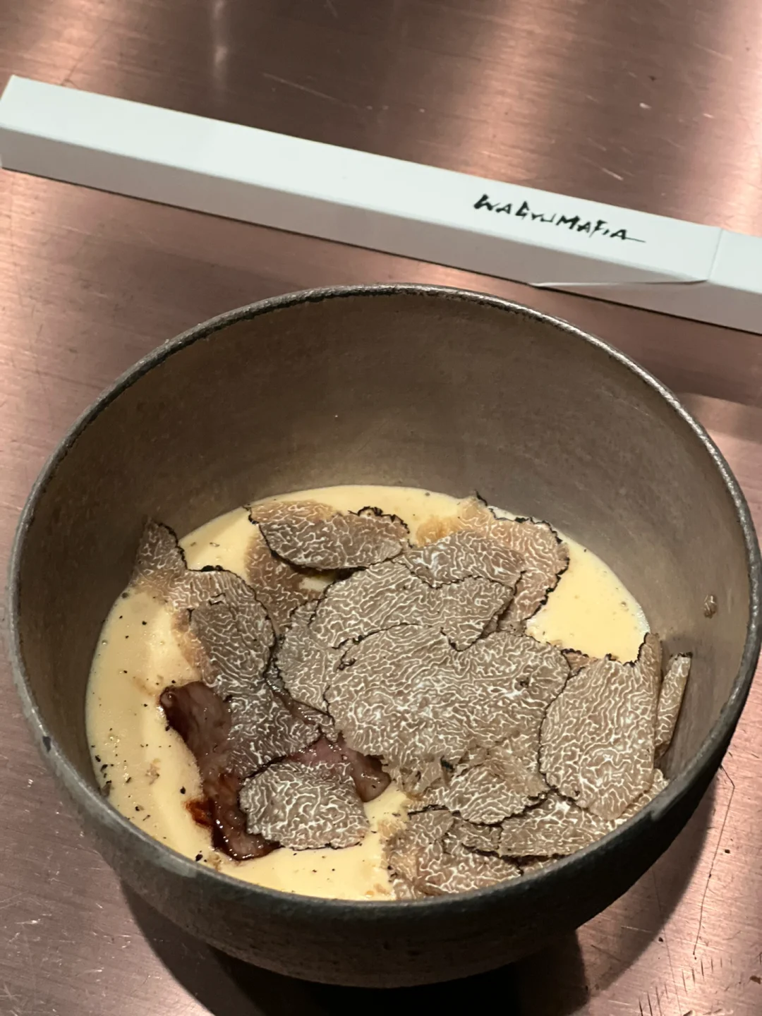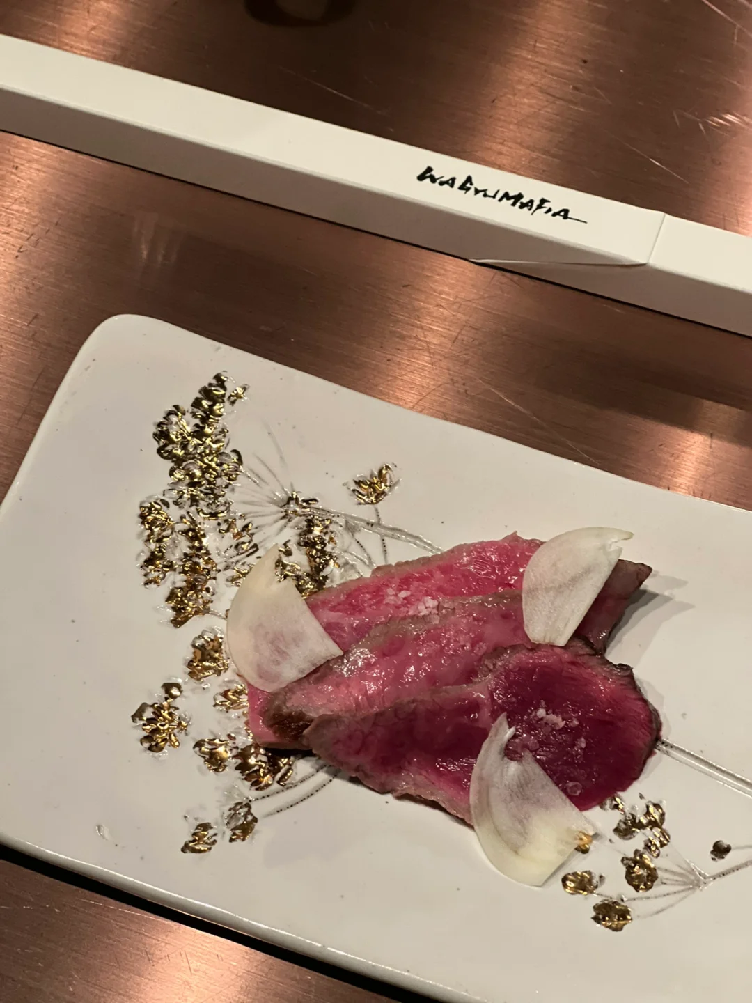 Wagyumafia HK是来自东京的和牛届大有名气的和牛黑手党香港分店 每上一道店员都会举着摆个pose等你拍照 也算是特色之一了 - 店铺的设计也很别出心裁 一进去以为是一个小拉面餐厅 店员会带你进入一个冷藏室 先品尝风干80日的和牛片和一杯酒 之后便进入了Wagyumafia的部分 - 最爱和牛三明治 面包部分该脆的地方脆 和牛部分油脂分布均匀 吃完不会觉得腻 整个套餐下来真的超级饱 由于基本每道菜都有和牛 吃到最后实在是很腻 - 🥩店名:Wagyumafia HK ⏰时间:周一至周六 18:30-23:00 💰价格:1800HKD/人 📍地点:香港湾仔爱群道32号爱群商业大厦地下1B号 -