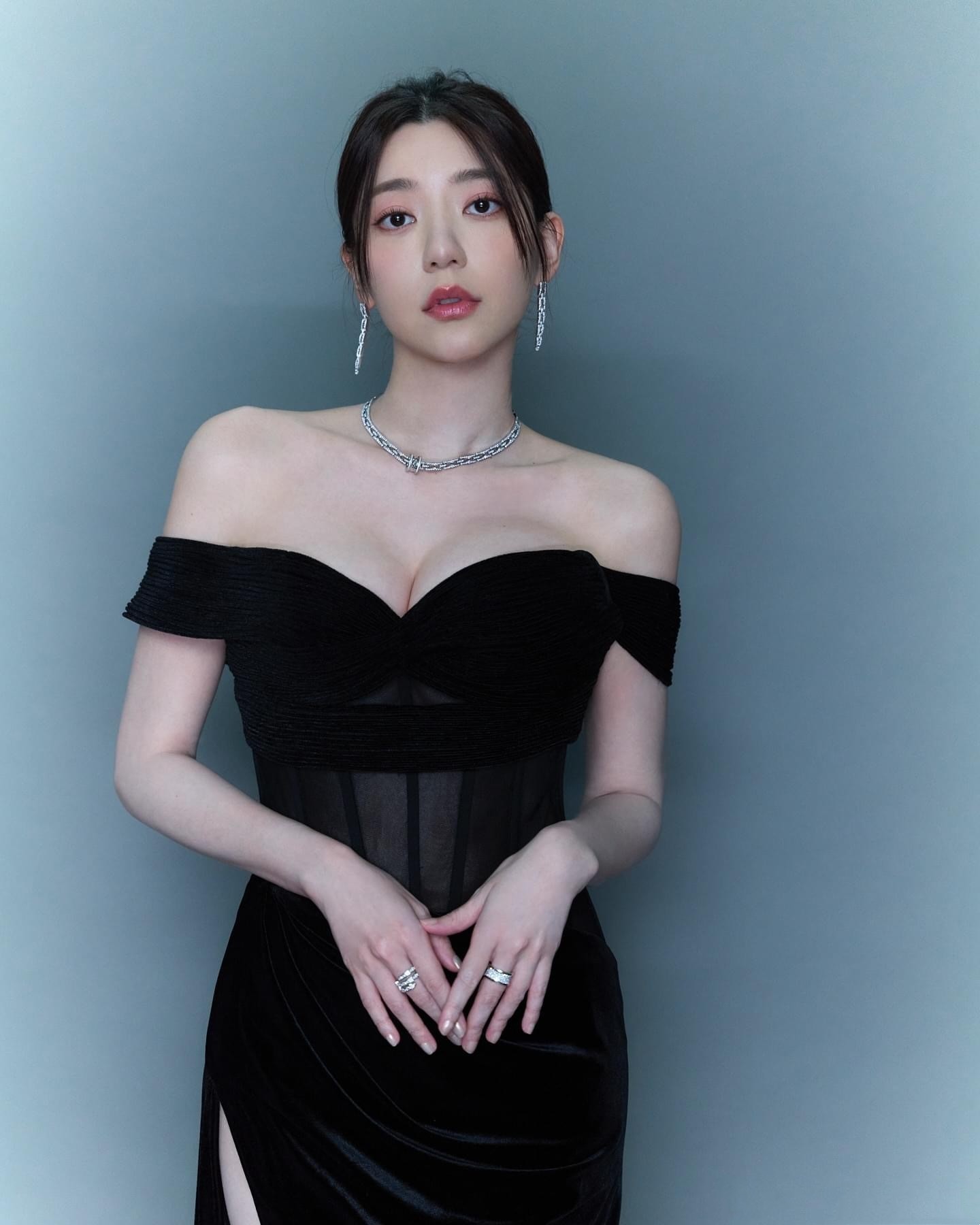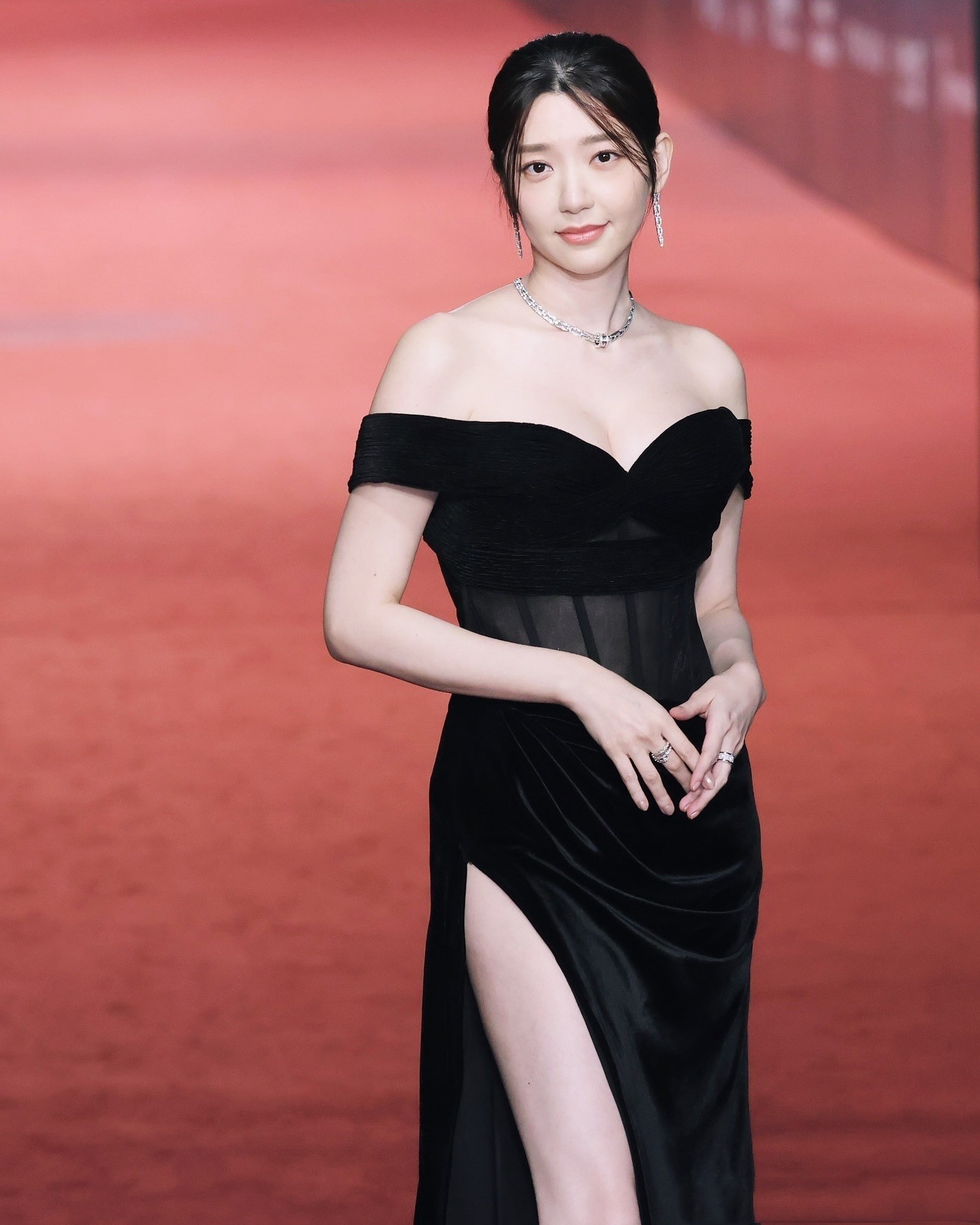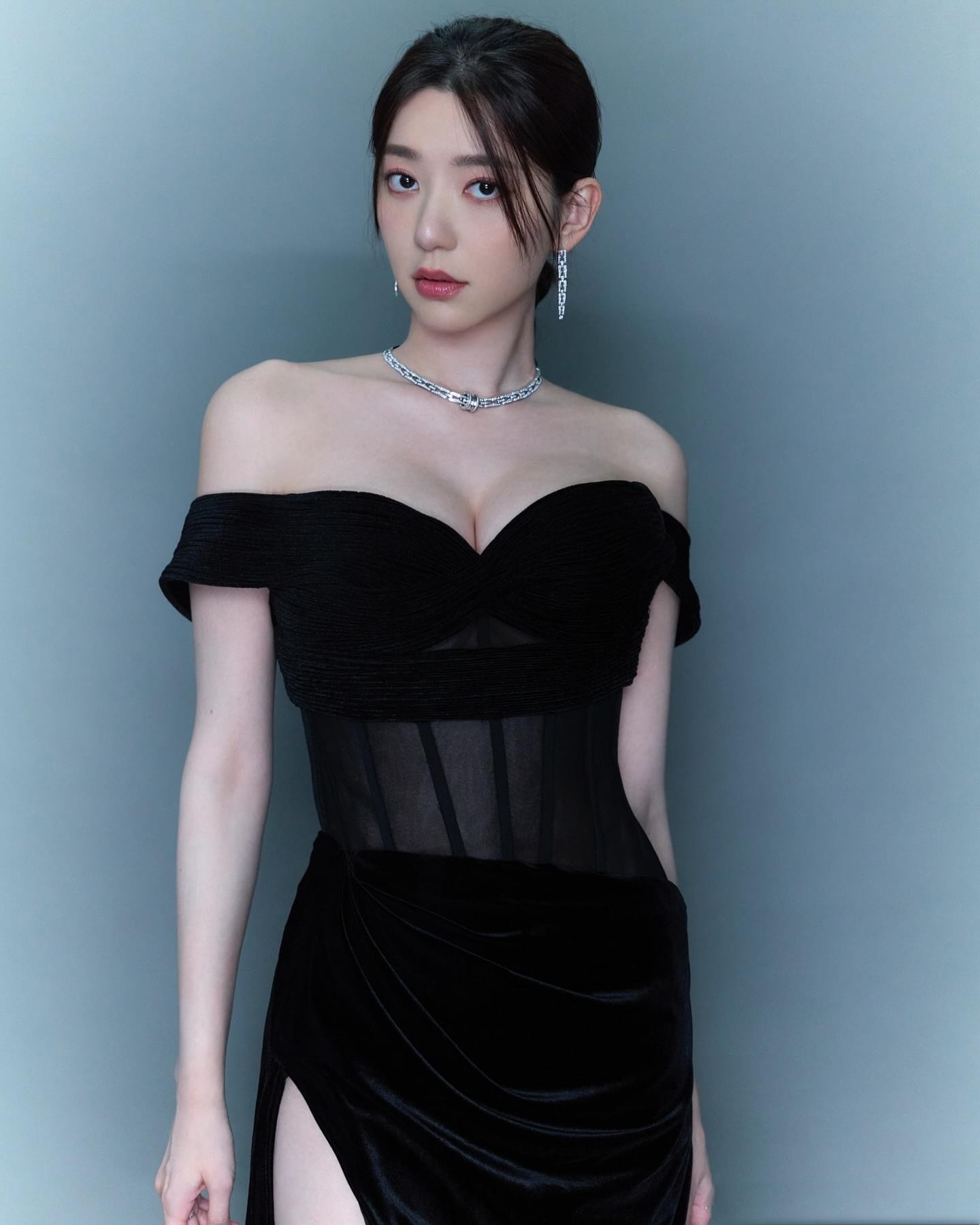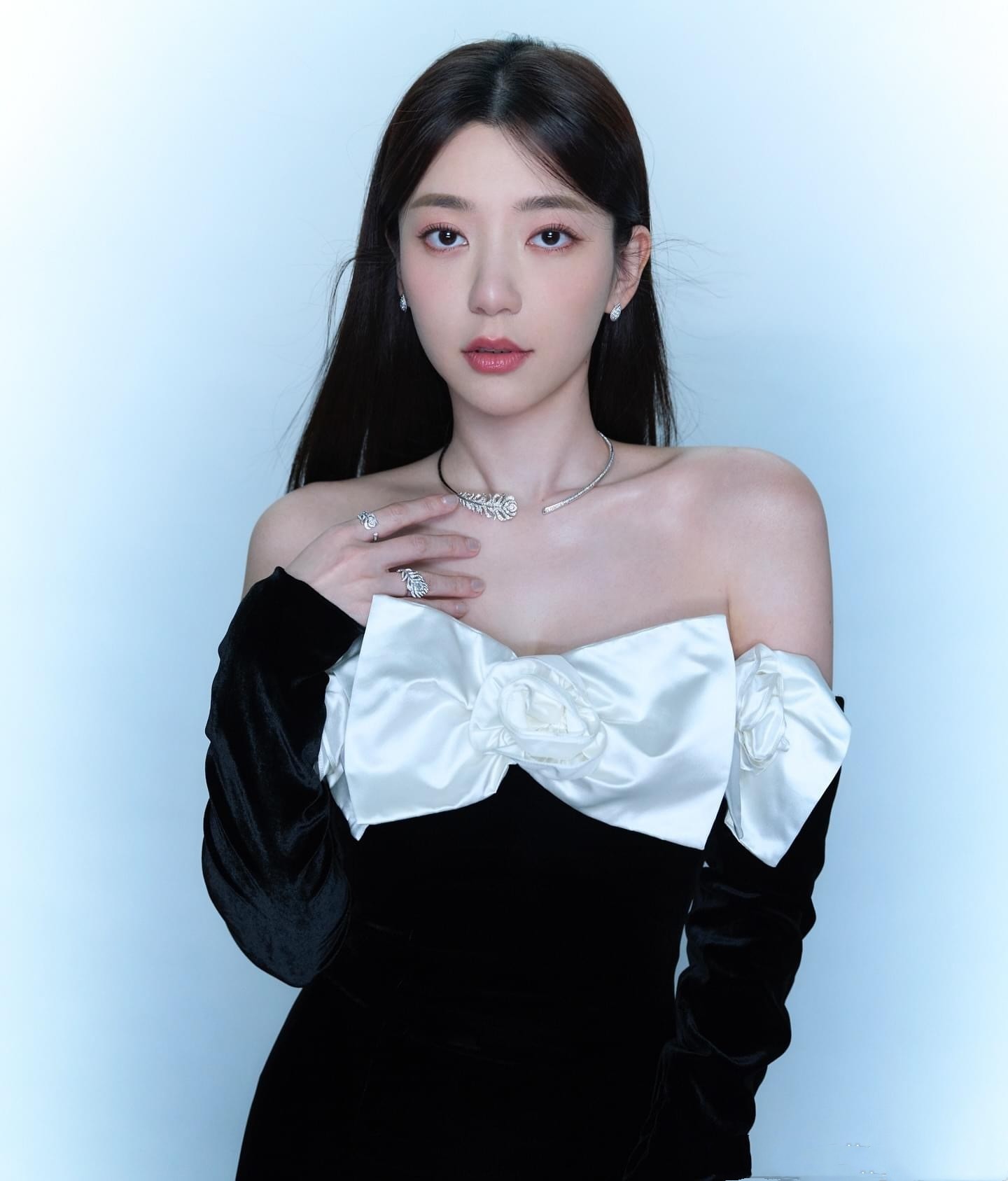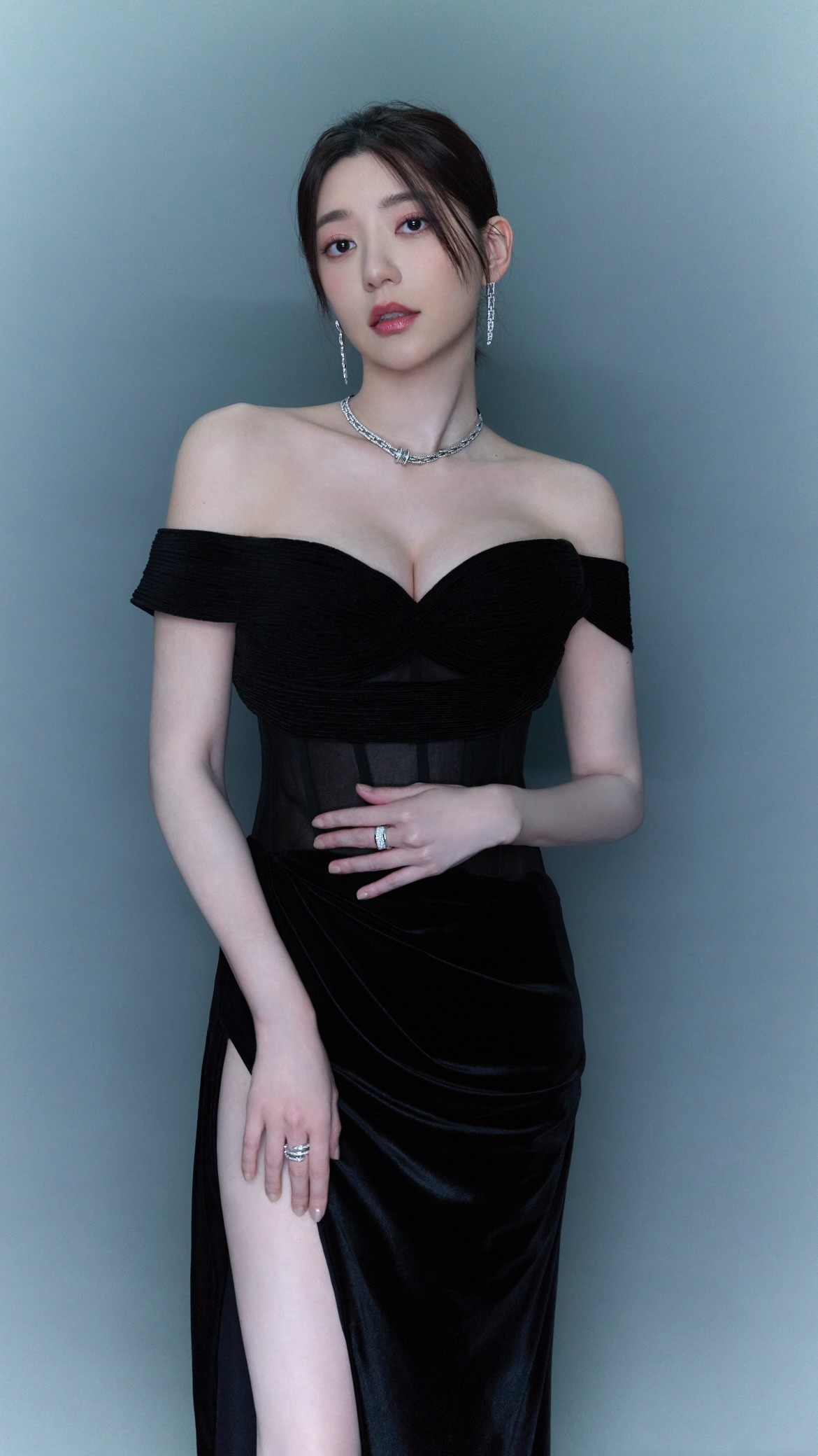 郭雪芙最新活动造型,一身黑色长裙,优雅动人。郭雪芙