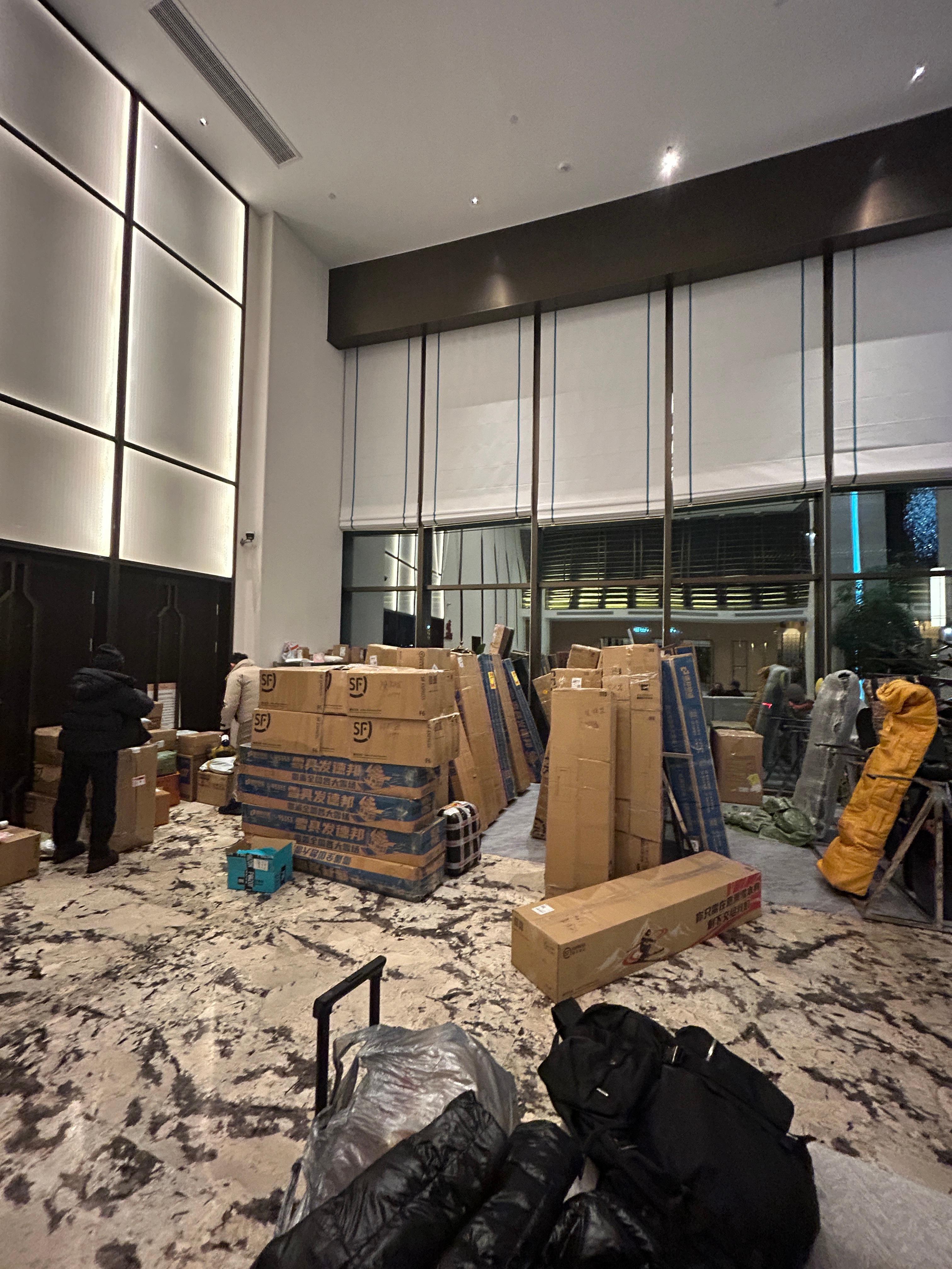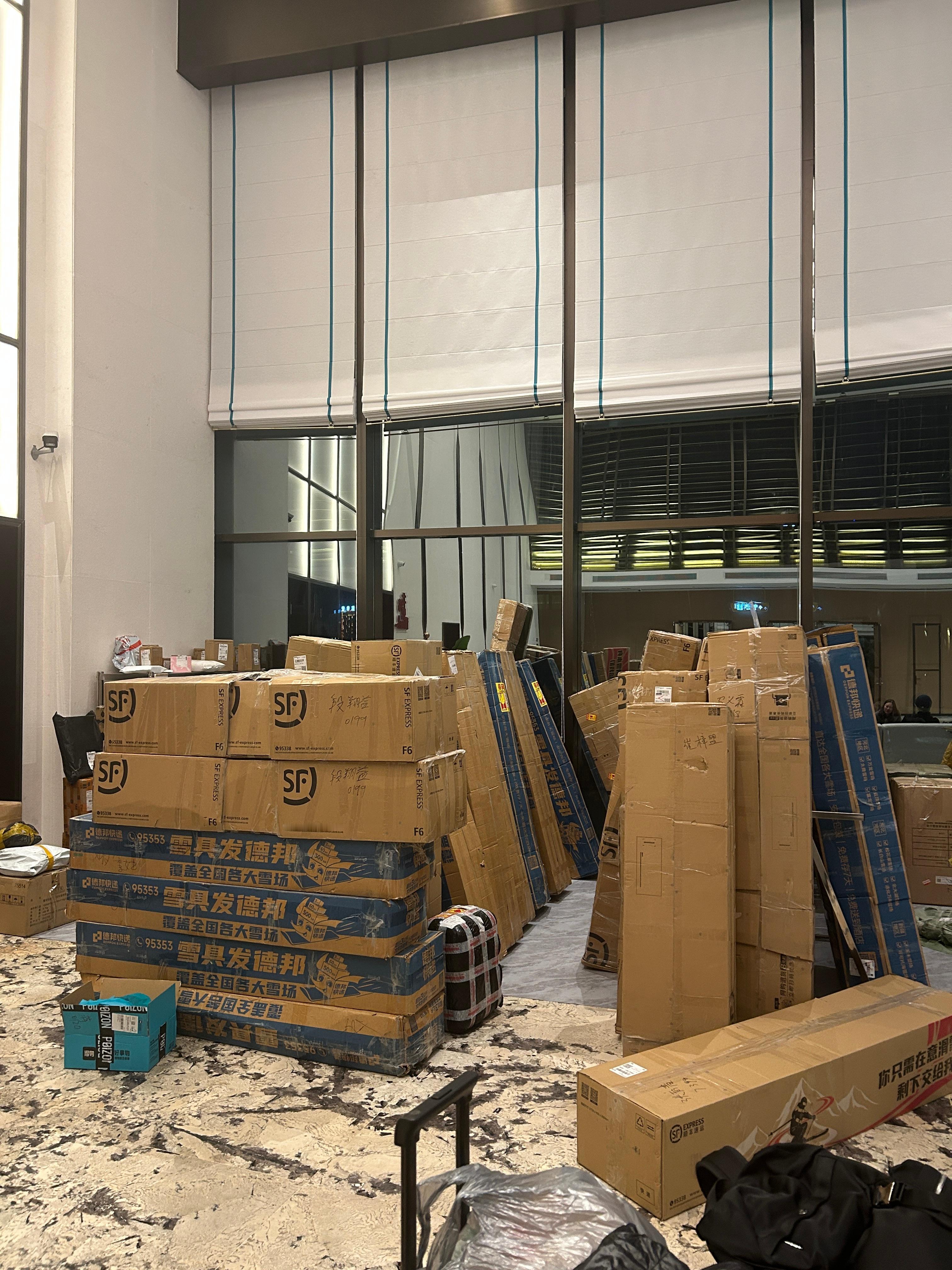 阿勒泰尊茂宝石酒店的大厅,都是要发走或发来的雪具哈哈哈哈....
