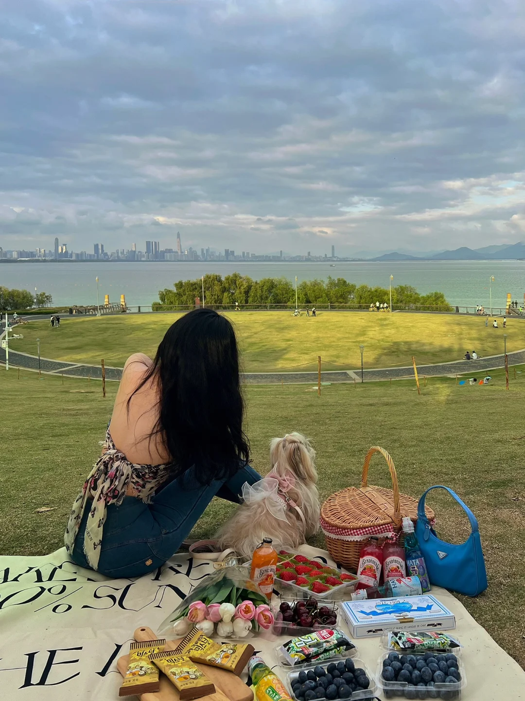 深圳湾公园日出剧场顾名思义是看日出的绝佳观景地 坐在碧绿的小山坡上与香港隔海相望 非常适合野餐和晒太阳 还有人不少人在这骑行和打羽毛球 -