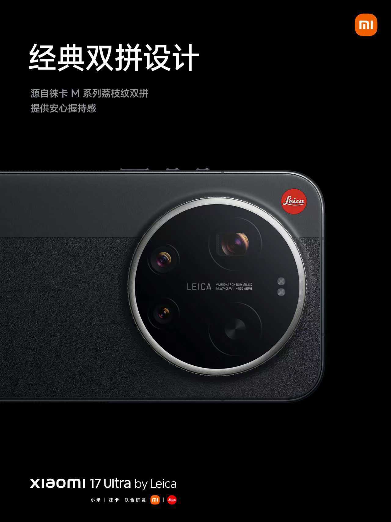小米17Ultra还有徕卡版灵感都源自经典徕卡相机。徕卡经典红标,德国精工品质认可;中框精雕滚花,徕卡相机镜头设计语言;徕卡铭文。经典黑白色经典拼皮设计,小米17Ultra今日发布