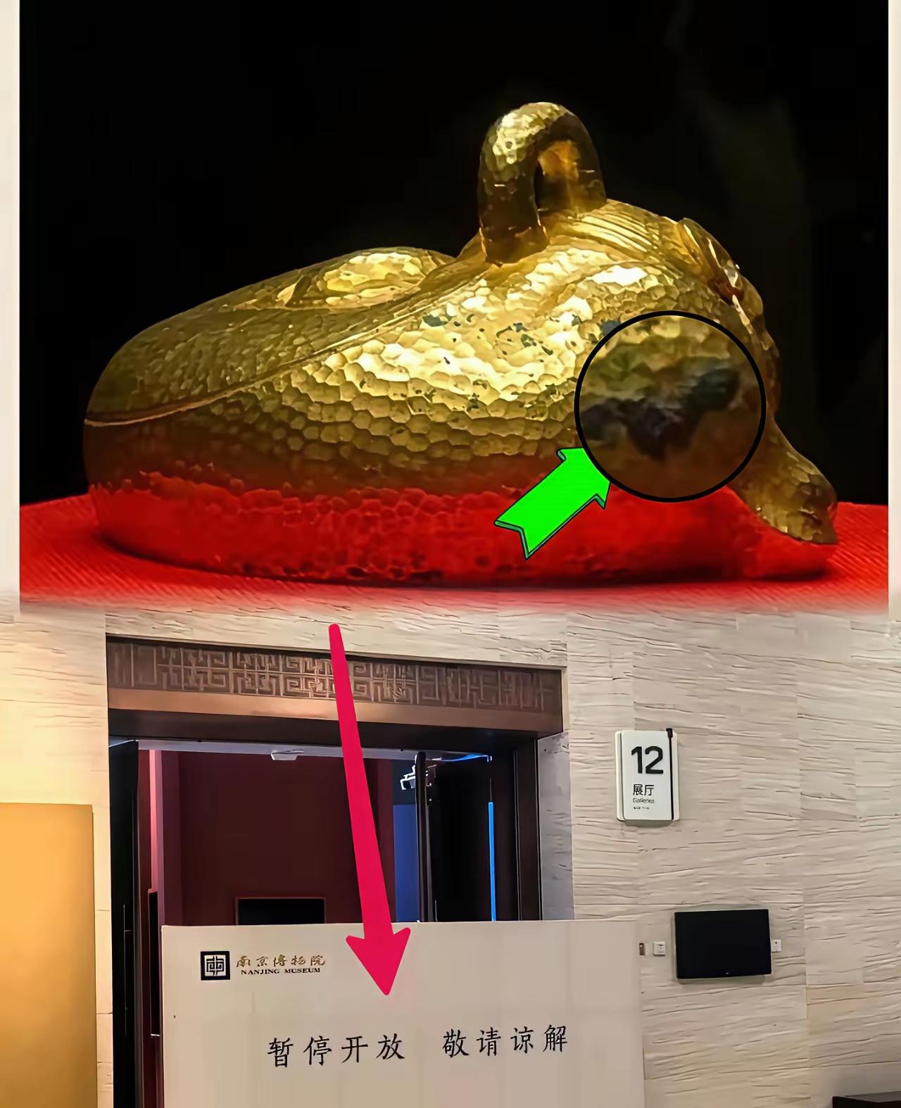南京博物院的镇馆之宝,西汉金兽展厅,有网友爆料:直接关门上锁了,说是在“装修”。 镇馆之宝的大金兽“掉色了”,有网友在不同时期的照片为证。 此金兽1982年出土文物,最晚应该是西汉时期,99%的黄金,是金子总会发光,在那个环境下,历经千年,仍然是金光闪闪。 现在的条件下,专门的展厅,专业的护理人员,更好的设施下,金身的铜锈却越来越多了。 难道化学课本都是骗我们的吗? 不说金子最稳定吗? 怎么还掉色显现铜锈呢? 这个不仅仅是金子珍贵, 工艺高超更无价,独一无二,国宝中的重量级国宝。 真相如何?