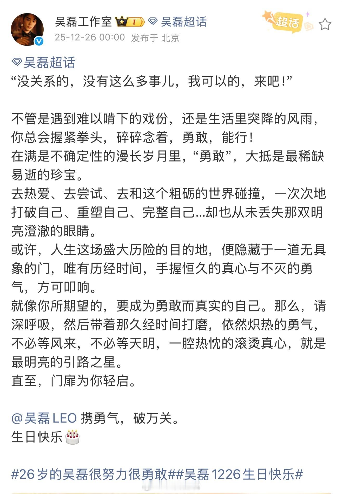 看到了新丽,电视剧剑来卡零点为吴磊庆生,乘风破浪的少年从不缺乏一往无前的勇气,闯关破难已是家常便饭。祝吴磊生日快乐,新的一岁踏浪而行,万事胜意。