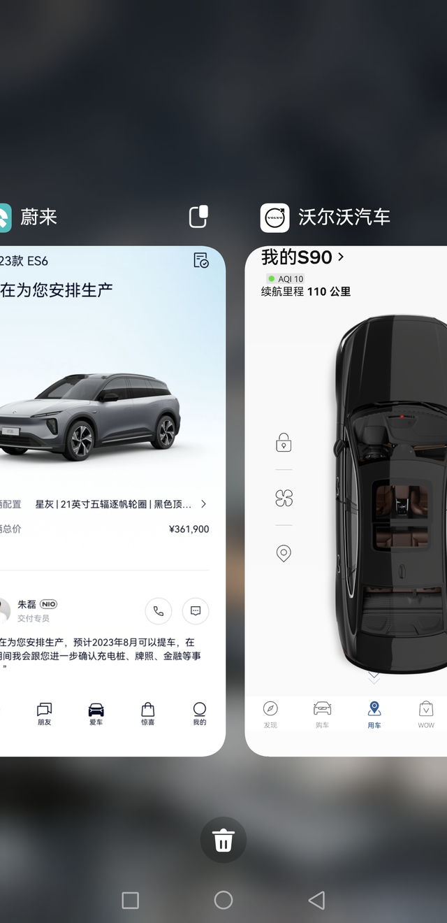 纠结了一个礼拜选了es6 每天都在某帝上逛逛,好家伙,不逛还好,一逛就搞事情了,一开始觉得理想这个车还不错,空间也比较大,颜值也在线,我一开始是被理想的露营生活吸引了。陆续看了3个月,就起了一丝换车的邪念。 原来的s90是19款,到目前为止开了4年半不到一点,其实我感觉换车还偏早了一点,车子行驶过程中也一直比较ok,不管是安全性还是车内空间。 一开始是试驾的理想L7pro,发现座椅偏软,但是开起来也挑不出什么大毛病,印象深刻的是后排空间确实大,还有一个就是悬挂整体都偏软,有点不习惯,试驾时候路有点颠簸,第一次试驾就让10几年的老司机产生了头晕。 后来又去看了蔚来,某音上了解到续航拉胯,其实是有点不太考虑的,在试驾后,整个人的想法就改观了,开起来的爽感简直爆表,车机智能体验这块感觉也非常好,就觉得这是一款非常适合自己开的车,内饰肉眼可见的更加精致一些,虽然空间这块不如L7,还是往蔚来倾斜,我自己主要就是市内开开,很少高速,小区可以安装家充,之前的续航也就不是问题了。