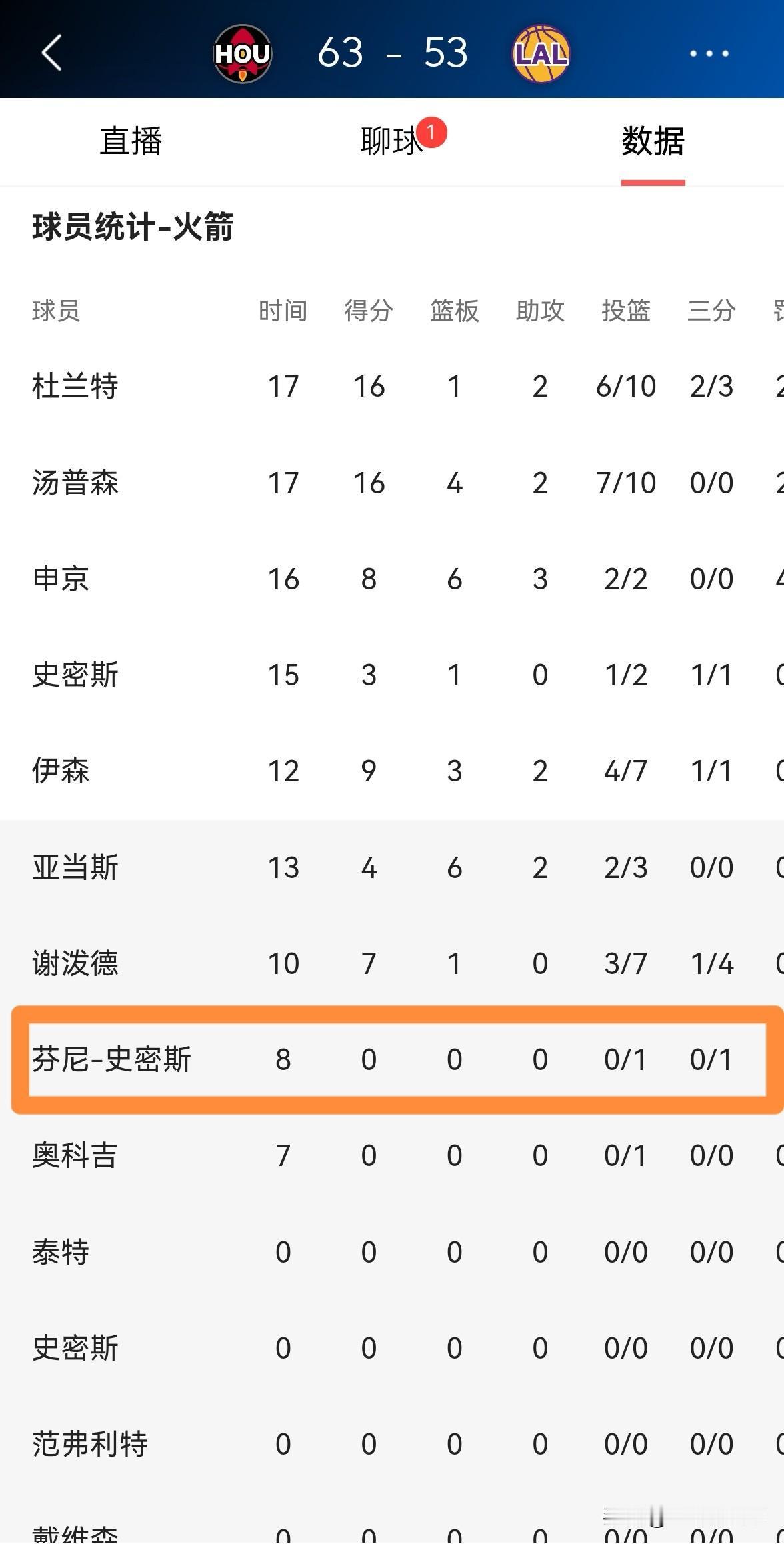 火箭大将芬尼-史密斯真是太有自知之明了!在今天火箭客场挑战湖人的上半场比赛中,伤愈复出的芬尼-史密斯深知自己的进攻状态一般,因此他将大部分的精力投入到了防守端。在前两节比赛中,芬尼-史密斯替补出战8分钟,投篮1中0没有得分,他的场上正负值为-2。